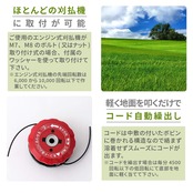 ●回転中に軽く地面を叩くだけで自動的にコードが繰出す。※コードを繰出す場合は毎分4500回転以下の低回転にて底部を地面に軽く当てて下さい。