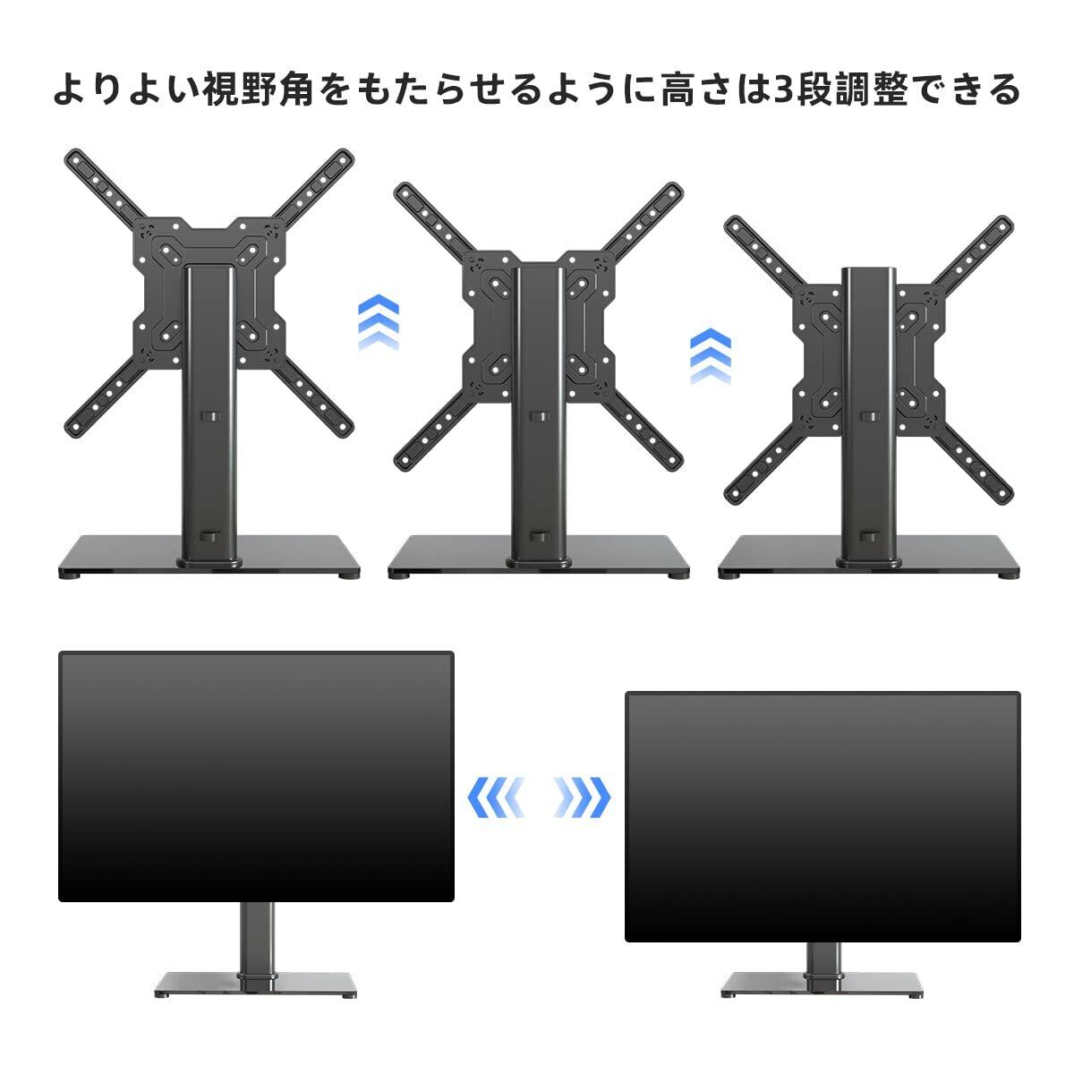 3種類の高さ調整可能:3レベルの高さ調整があり、それぞれの高さは50mmずつ調整可能で、テレビスタンドののサイズや座席の高さの要件を満たすことができます。リビングルームだけでなく、キッチンや寝室に居ても、回転角度によって、素晴らしい瞬間を見逃しません。