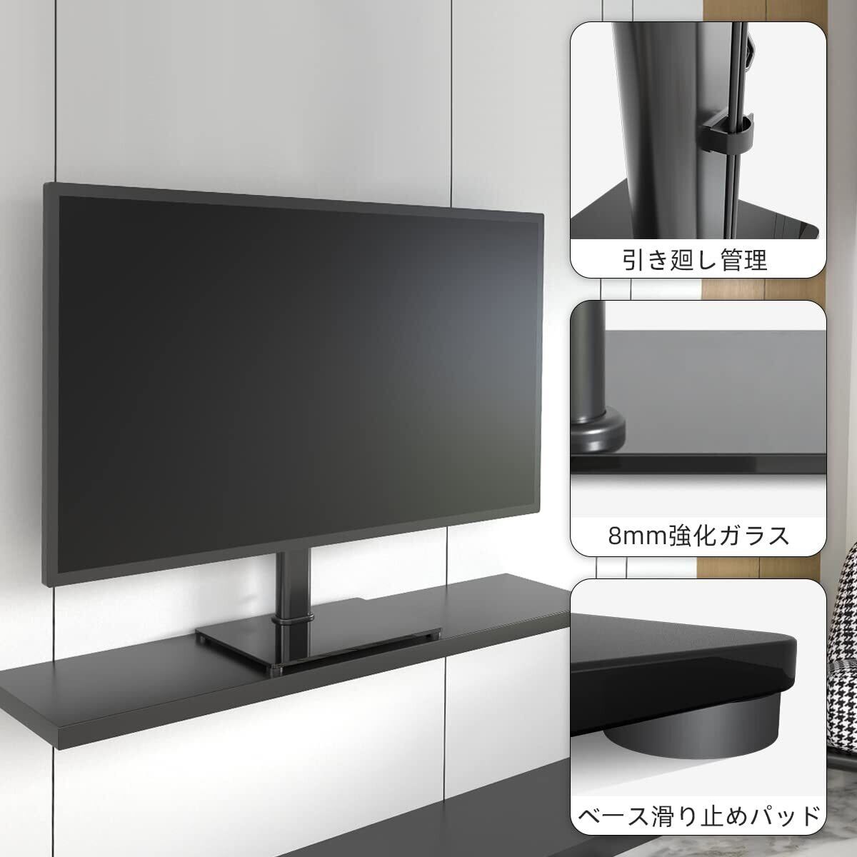 テレビスタンドの安定性:高品質の冷間圧延鋼がコア材料で、最大耐荷重は40kgです。頑丈で耐久性のあるモニタースタンドを提供します。 8mm強化安全ガラスベースは400 x 260mmでAVコンポーネントの置く場所とする機能があります。ゴム製の滑り止めの足が傷から保護します。