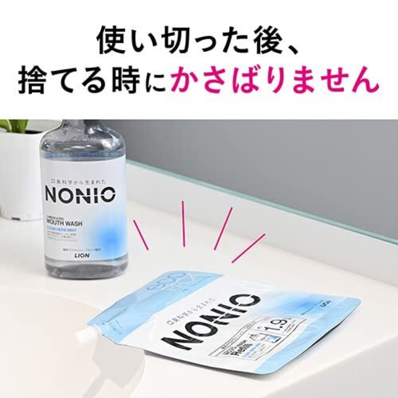 必ずNONIOマウスウォッシュクリアハーブミントの専用ボトルにつめかえてください