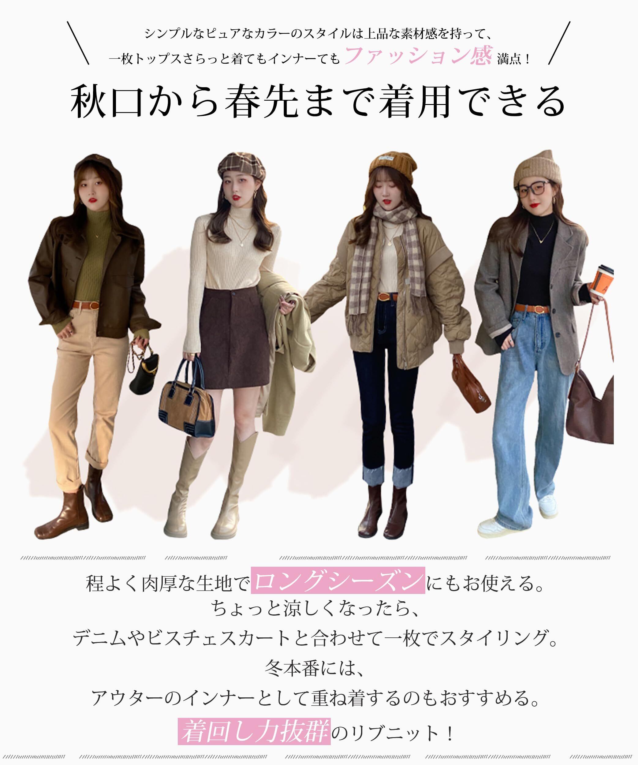 【秋冬ファションのよき相棒】フェミニンなハイネック長袖リブニットトップスが登場します!ハイネックニットのシルエットが、首もとは主張すぎないです。また程よい高さで顔周りをスッキリ見せつつ、柔らかな素材により首周りは絞めつけもなく暖かく心地いいです。薄手の生地が軽やかなこなれ感を演出し、自然な女性らしさを引き立てる洗練されたリブニットです。シンプルなピュアなカラーのスタイルは上品な素材感を持っていて、一枚トップスさらっと着てもインナーてもファッション感満点!