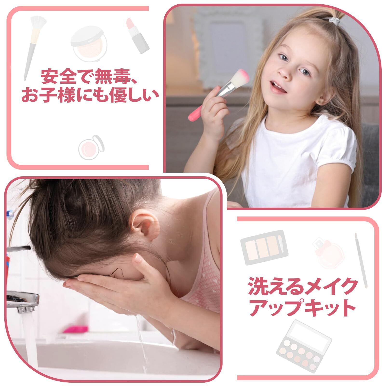 【安全な素材の子供 メイクセット】このキッズ・女の子メイクセットは高品質の材料で作られており、国際的な子供のおもちゃ基準の安全要件を満たしています。 メイクアップは石鹸と水で簡単に落とせ、肌にシミを残しません。 ご使用前に、お子様の皮膚テストを行うことをお勧めします。