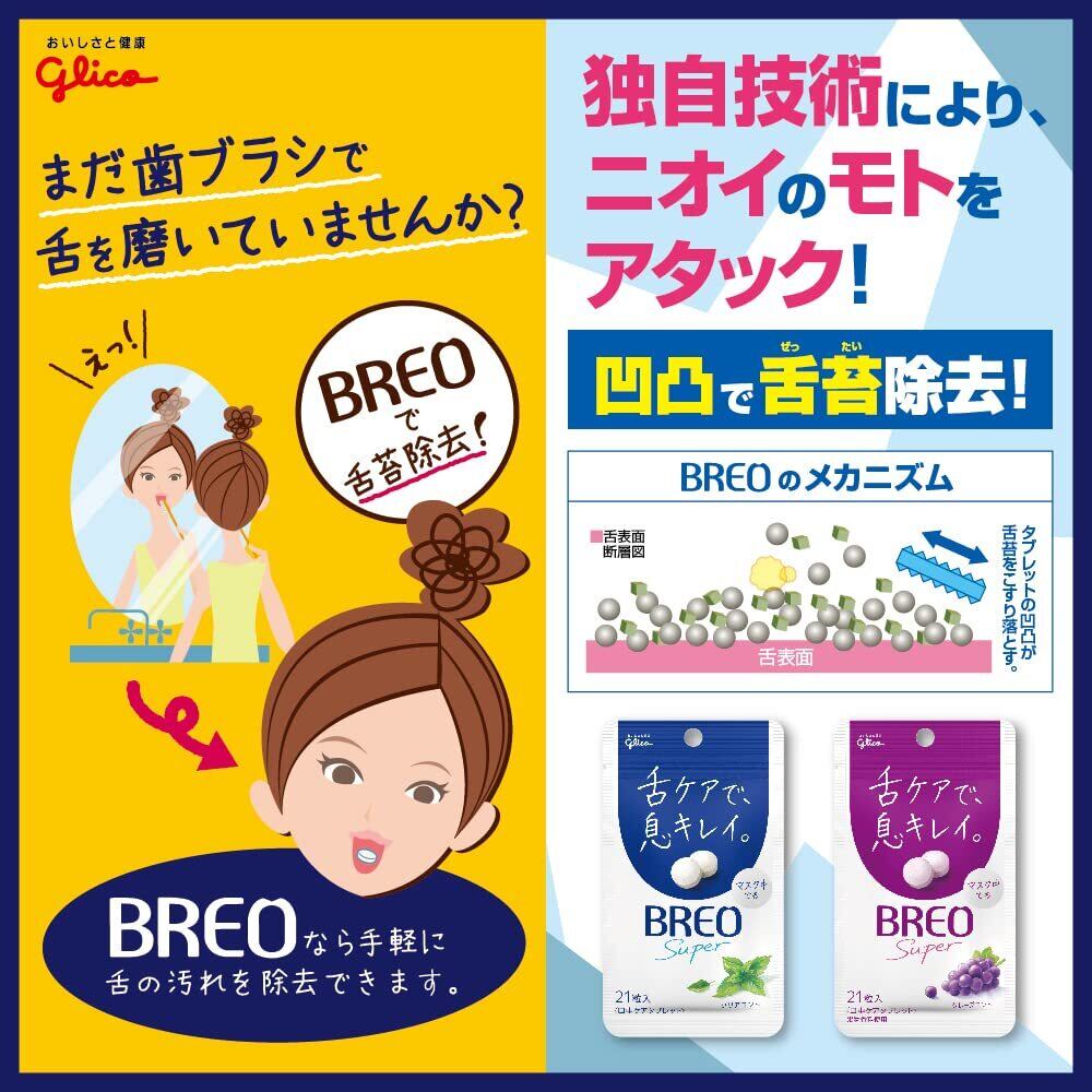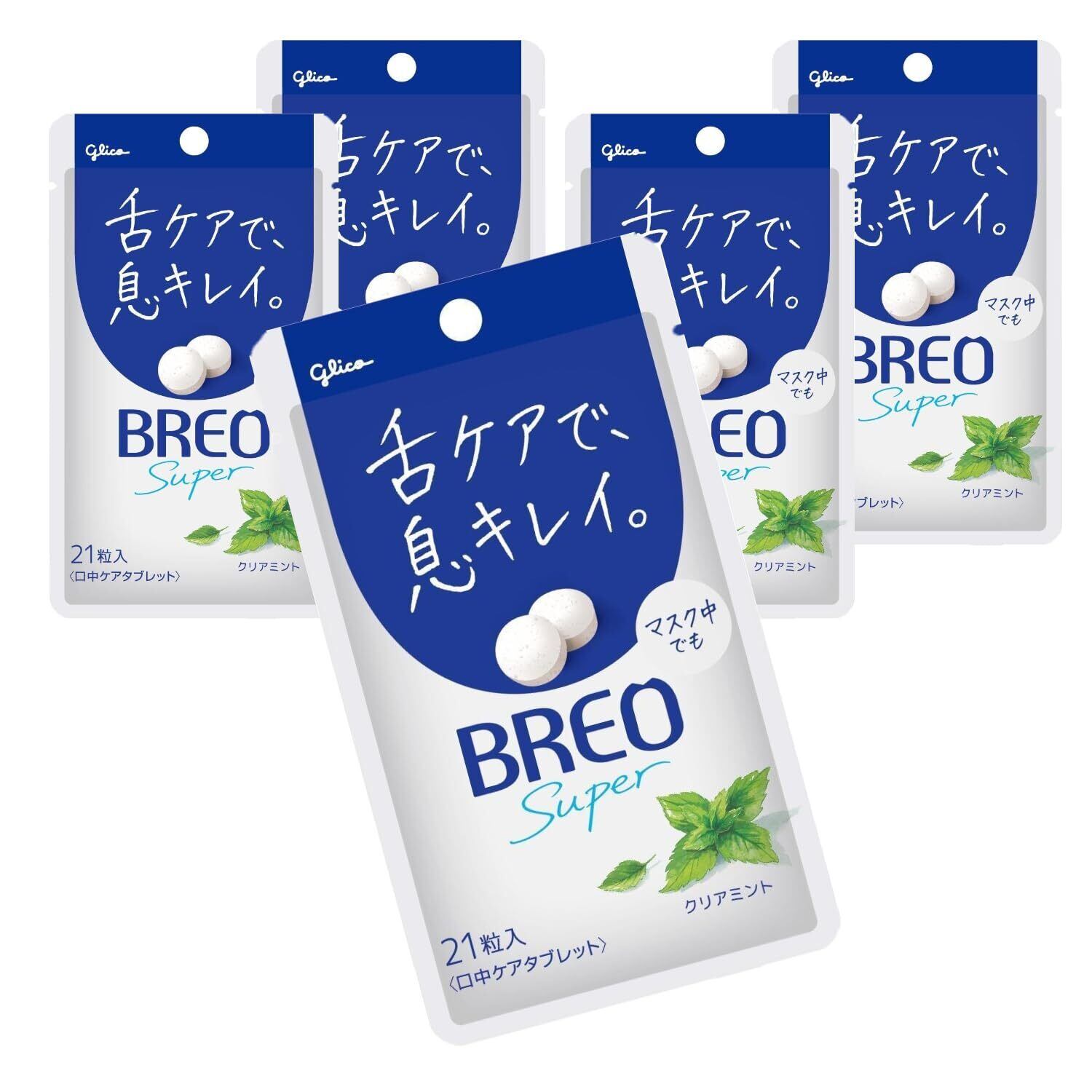 【2022最新】BREO(ブレオ) SUPER クリアミント 17g×5個 江崎グリコ 口中ケア タブレット シュガーレス 舌ケア 息キレイ 舌苔 マスク glico