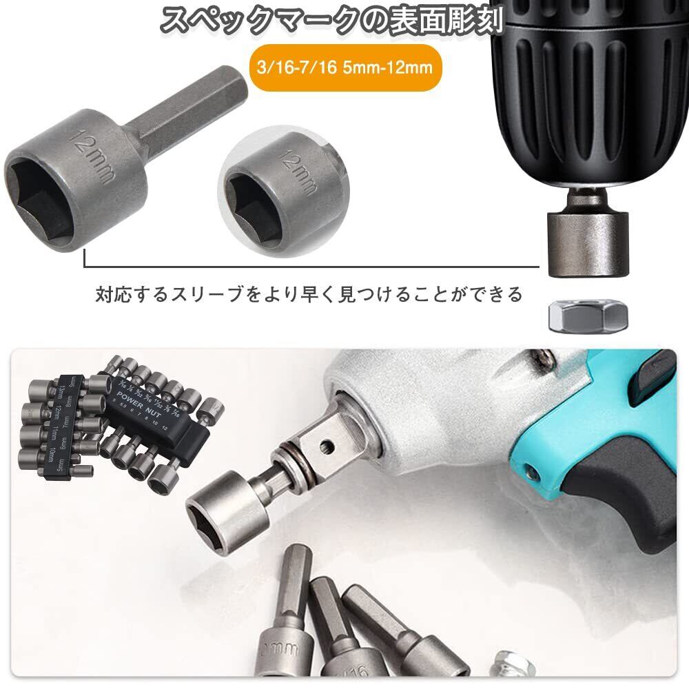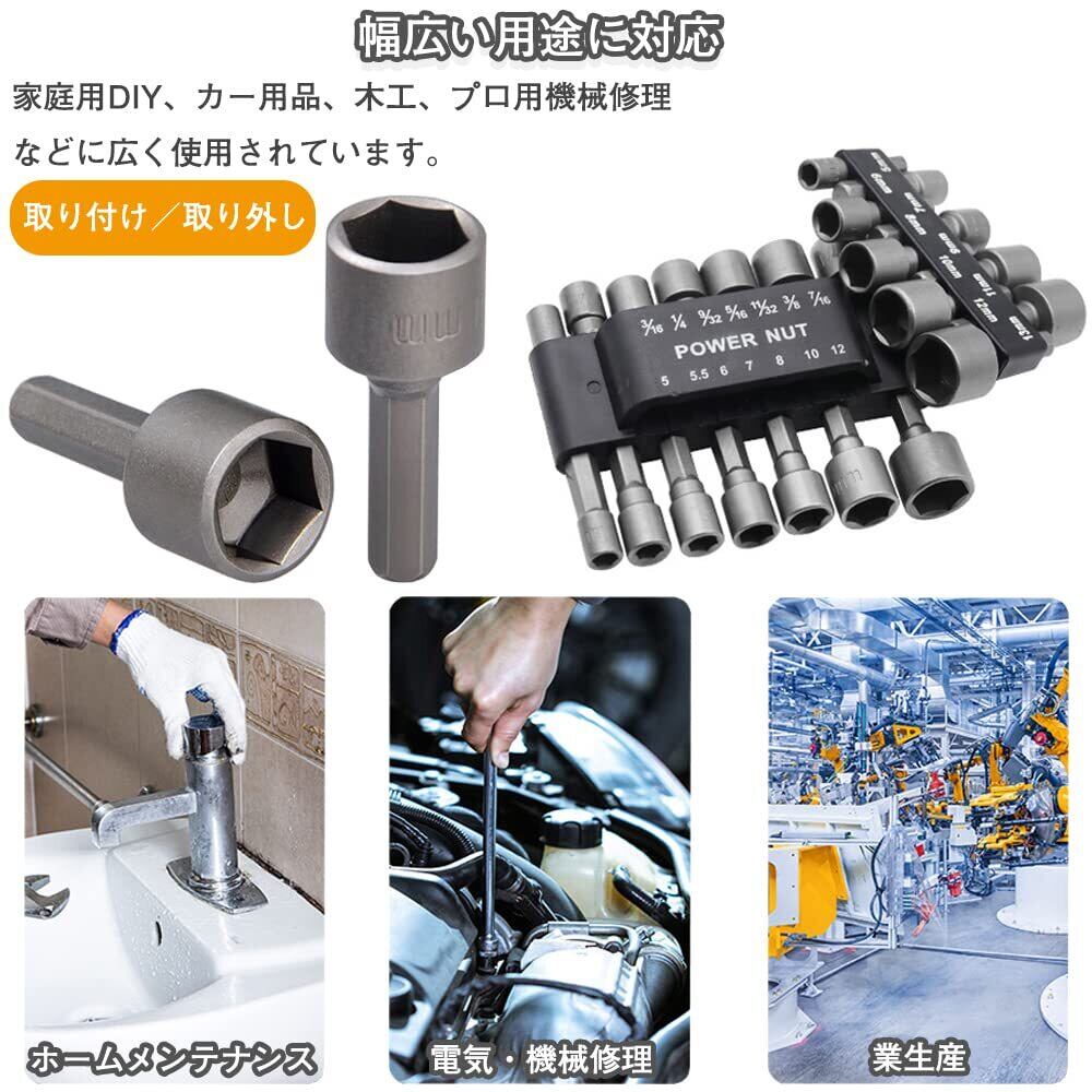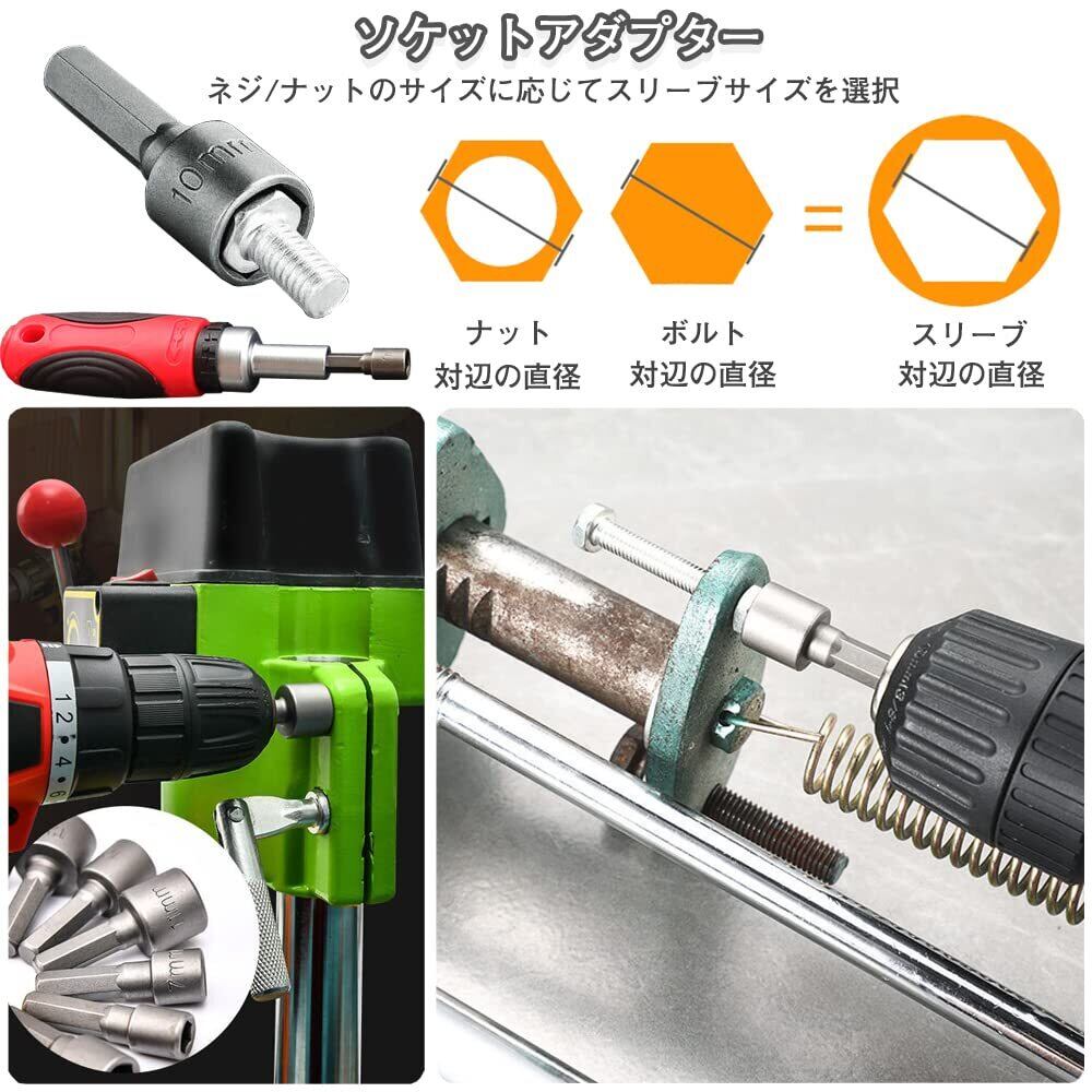 取り付け、取り外しが簡単です。 持ち運びや使用に便利な収納クリップ付きで、設置面積が小さく、持ち運びに便利です。電動ナットドライバービットです。家庭のDIY、木工、車の部品、プロの機械修理などに適しています。