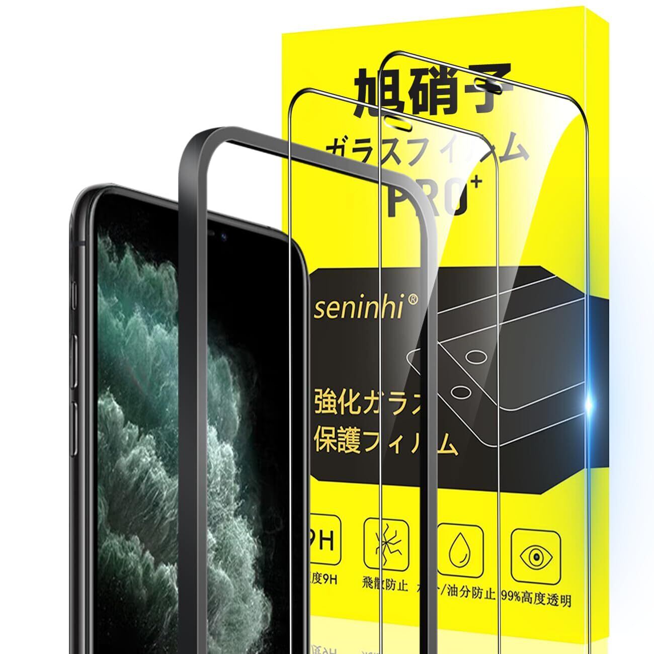 【専用設計·簡単に貼り付け】Apple iPhone11 Pro Max アイホンXS Max あいほん11 Pro Max 6.5インチ 専用液晶画面保護ガラスフィルム。本商品は日本素材のAGC 旭硝子 素材を採用して作られております。フィルムのシリコン自己吸着層により、スチールフィルムを携帯電話に合わせて軽く置くだけで、気泡が入らないように簡単に取り付けられます。(重点説明:フロントカメラのカメラ穴についてですが、ほこり・異物などの堆積を防止するため、ガラスフィルムにカメラ穴を開けていません。Seninhiのガラスフィルム 、通過率は99.9%なので、フロントカメラの正常使用に全く影響が出ません。)*モデルによっ