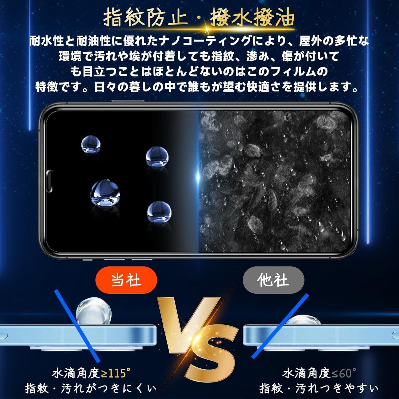 【汚れ防止&指紋防止 / 防水 / 耐油性】保護フィルム は、石材ナノコーティング層の最新の指紋防止技術を使用していますので、通常フィルム のようなラフなタッチは一切ありません。画面がさらさらで指紋が付きにくい、高感度で快適な操作を実現、汗防止、スムーズにゲームプレイ体験、長時間の楽しみなどの利点もあります。*万が一付着した指紋、水滴、汗、化粧品などは簡単に拭き取れます。市場に出回っている99%の携帯電話ケースと互換します;強化ガラスのサイズは携帯ケースを取り付けるためのスペースをよいし、両側が浮き上がらないように保証します。何百もの携帯電話ケースがテストした後、適応率は 99% と高くなり、フィルム対応できる携帯ケースの心配がありません。