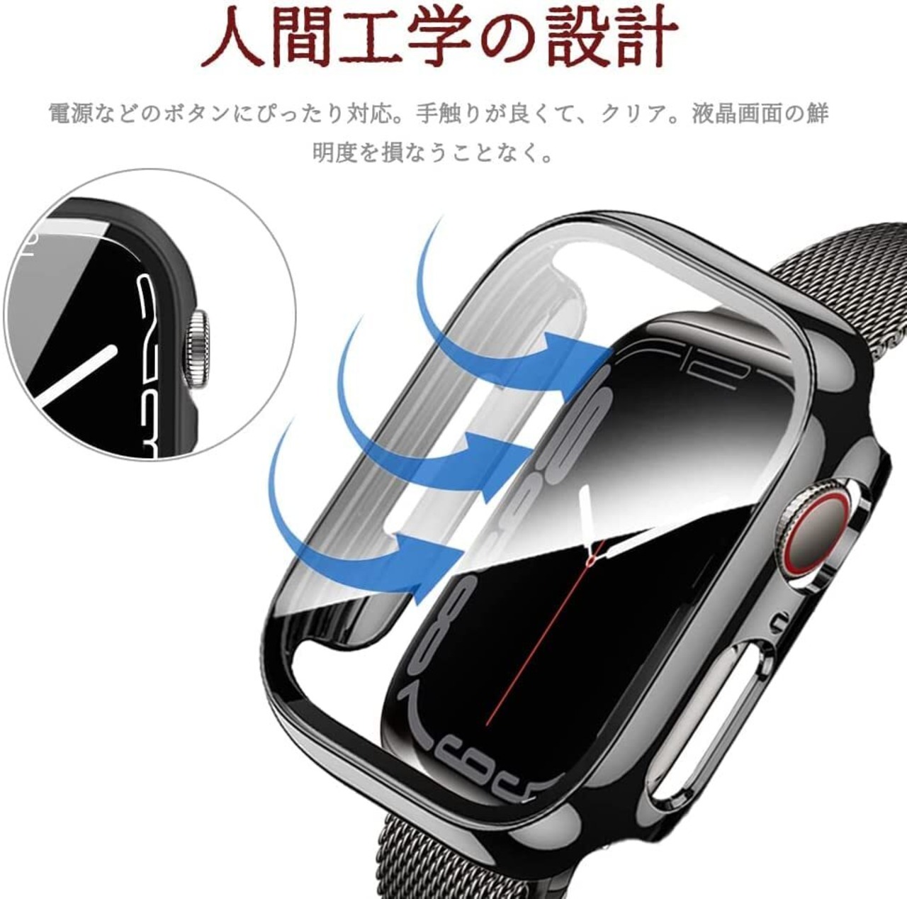【薄型&軽量タイプ】アップルウィッチに合わせて精密設計されて、違和感なく本体にぴったり、高透明な画面でタッチ感抜群、apple watchの美しさを損なわない。