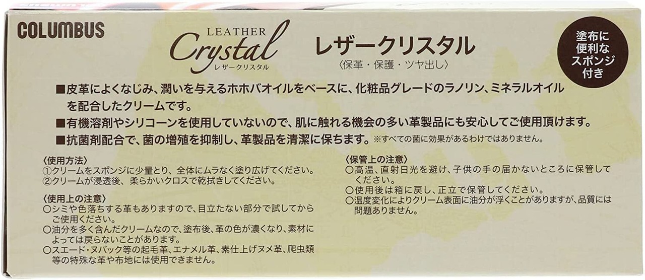 [コロンブス] 革製品をリフレッシュ 保革 保護 ツヤ出し レザークリスタル 抗菌プラス 無色 100g