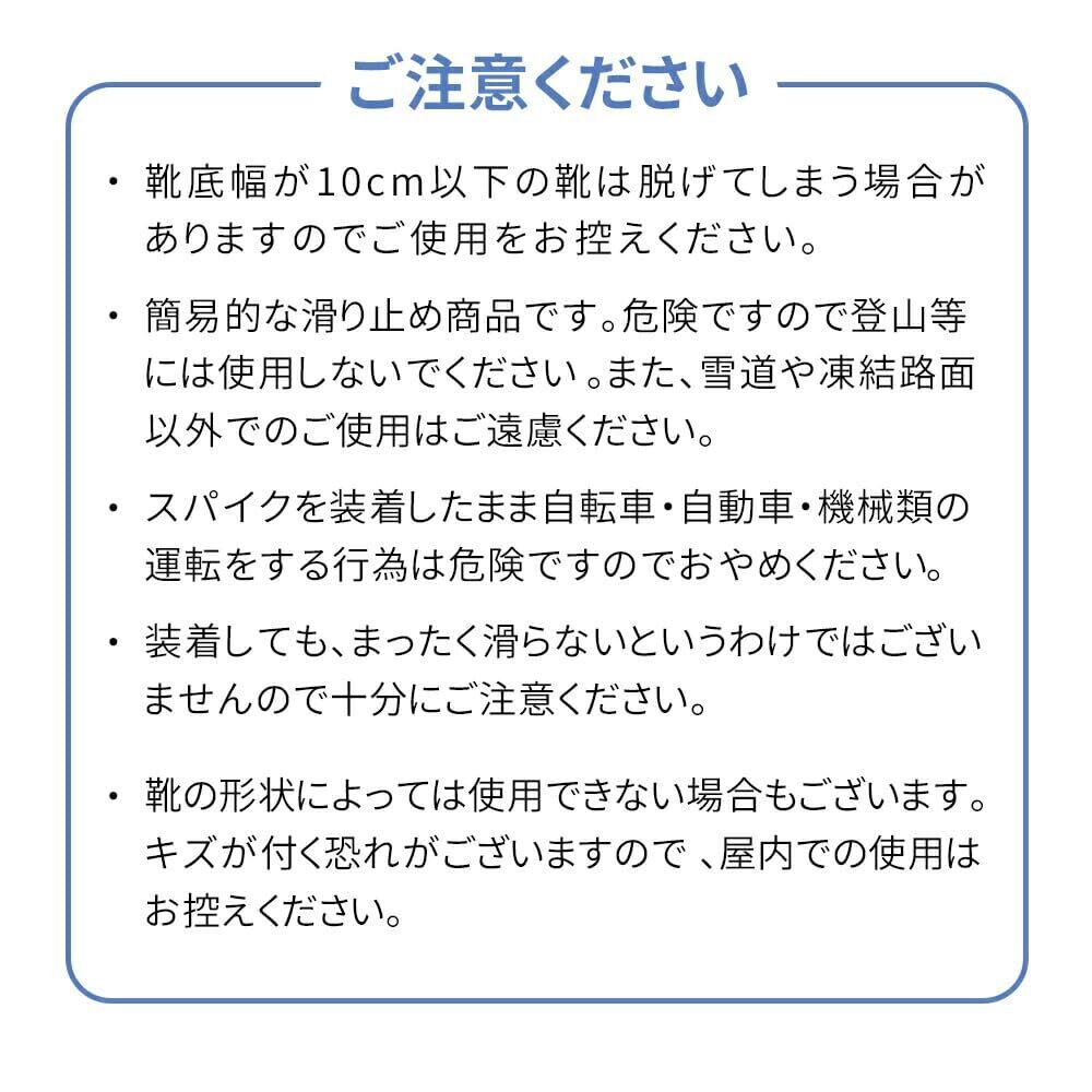 ・簡易的な滑り止め商品です。危険ですので登山等には使用しないでください。また、雪道や凍結路面以外でのご使用はご遠慮ください。