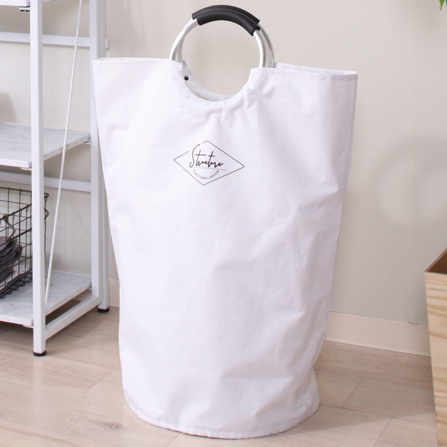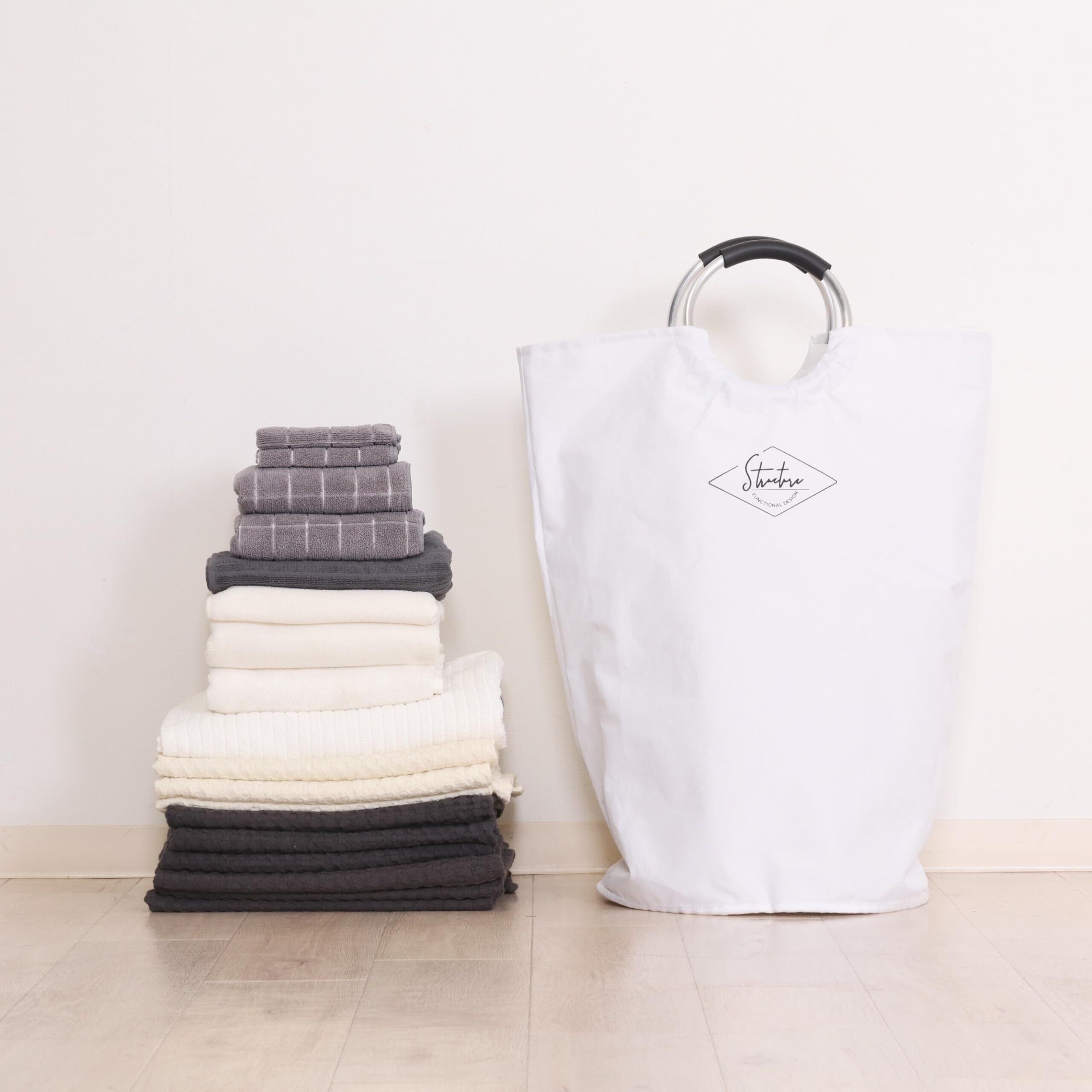 不二貿易 ランドリーバスケット トレーニング用品収納 キャンプ用品 アウトドア用品 フィットネス用品 おもちゃ 収納 洗濯かご 折りたたみ可能 取っ手付き ホワイト 40516 【Amazon.co.jp限定】