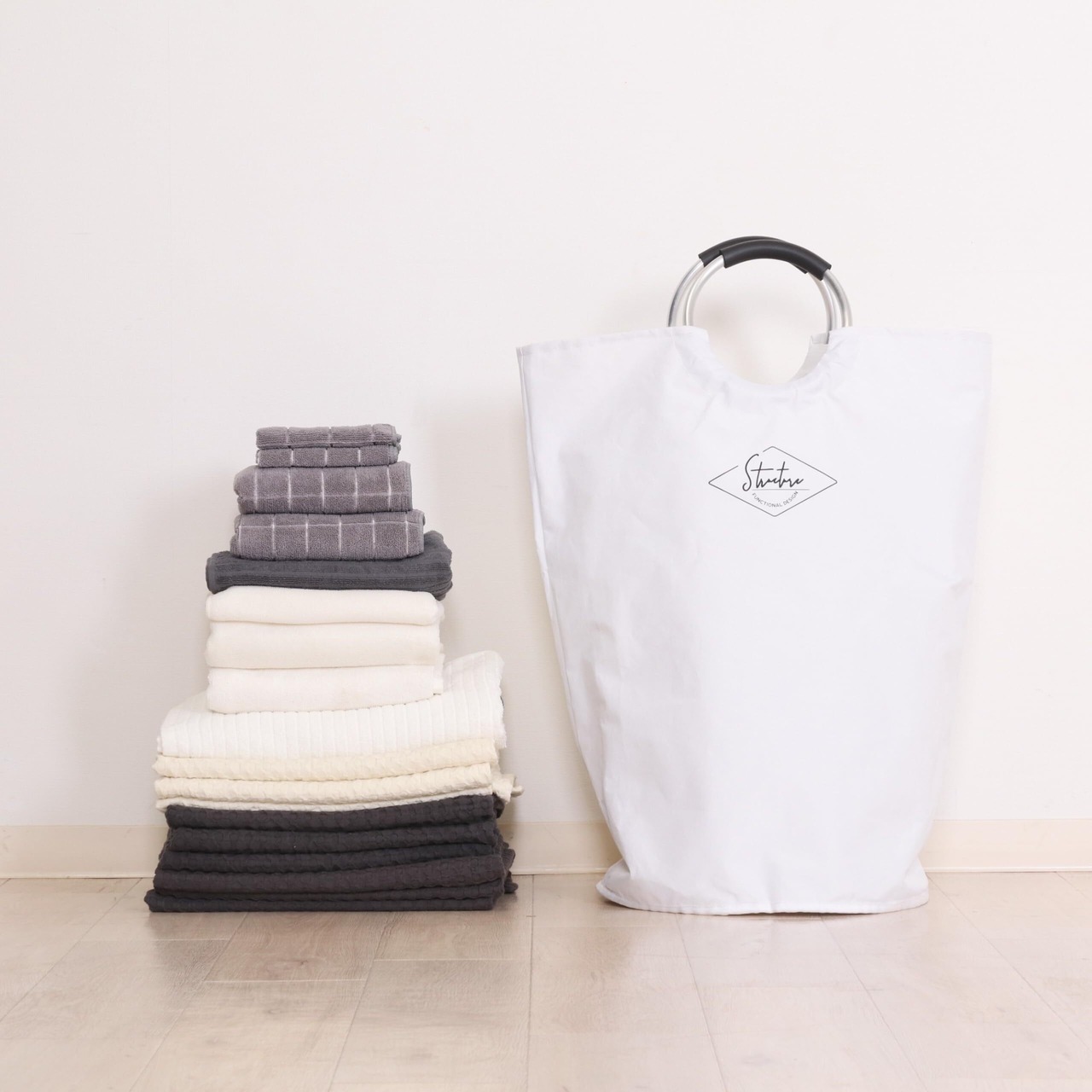 洗濯ものを入れるためや、コインランドリーに持っていく際にお使いいただくランドリーバッグとしてはもちろん、