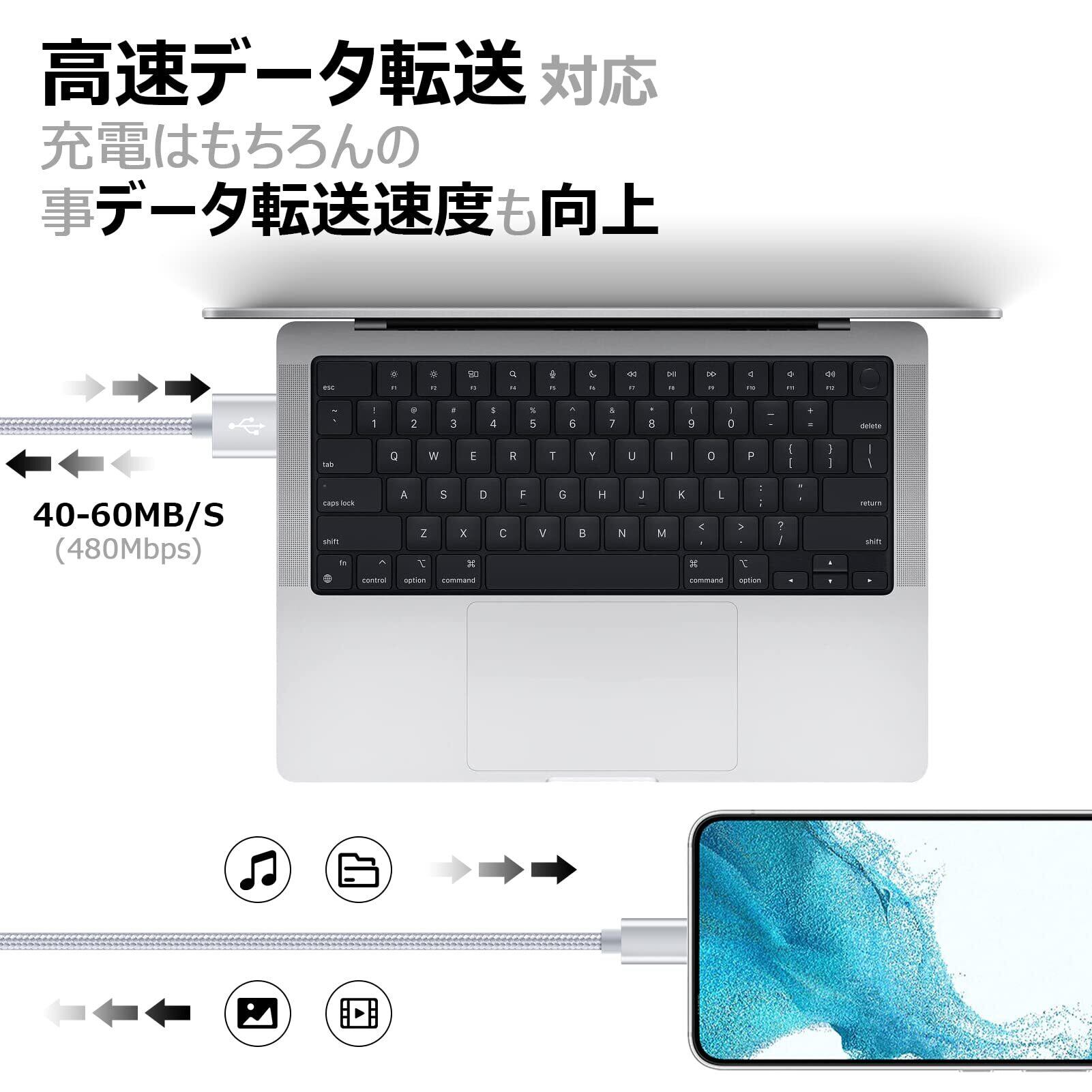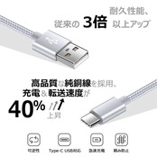 【急速充電・データ転送】このusb c ケーブルは、最大2.4A電流まで対応し、電気抵抗を減少し、充電時間が大幅に短縮されます。市販のケーブルより、充電スピード40%も速くなります。充電の同時に480Mbpsのハイスピードで、パソコンからスマホやタブレットへデータを転送します。