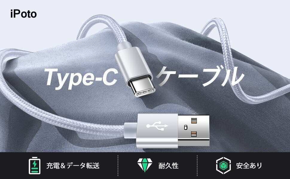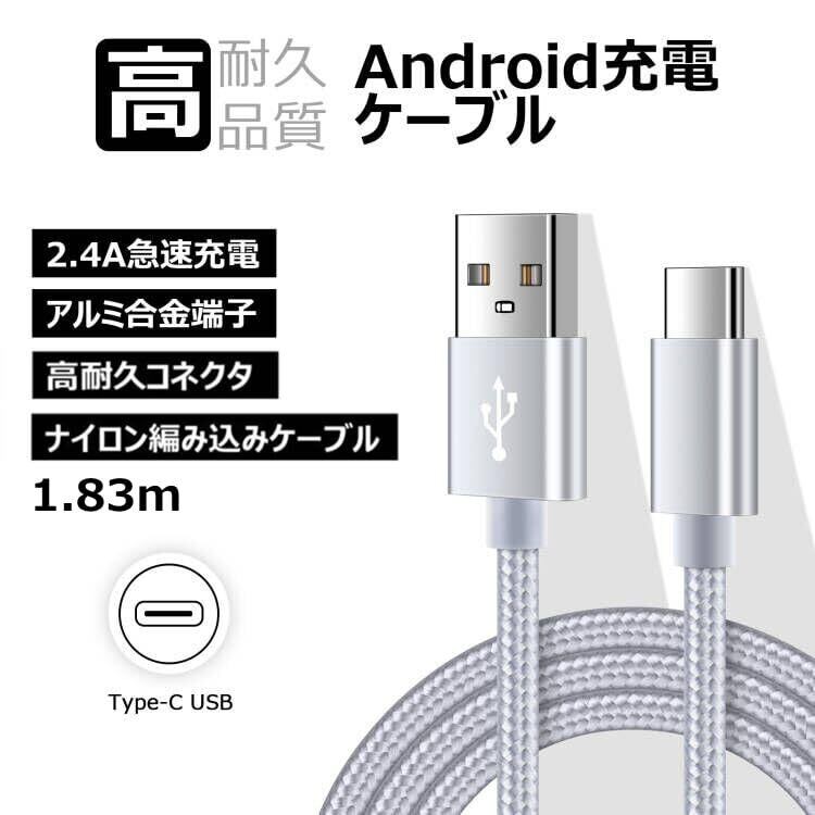 【特価セール】USB Type-C ケーブル 【2本セット&1.83m】 usb c ケーブル スマホ充電ケーブル タイプC ケーブル iPoto 急速充電 Android充電ケーブル QC3.0対応 usbケーブル 充電ケーブル USBコード データ転送 断線防止 高耐久ナイロン iPad Air4,iPadPro,sense,Pixel,Xperia,Xiaomi,Galaxy S22 S21 S10,Huawei,OPPOなどのタイプC多機種対応 シルバー
