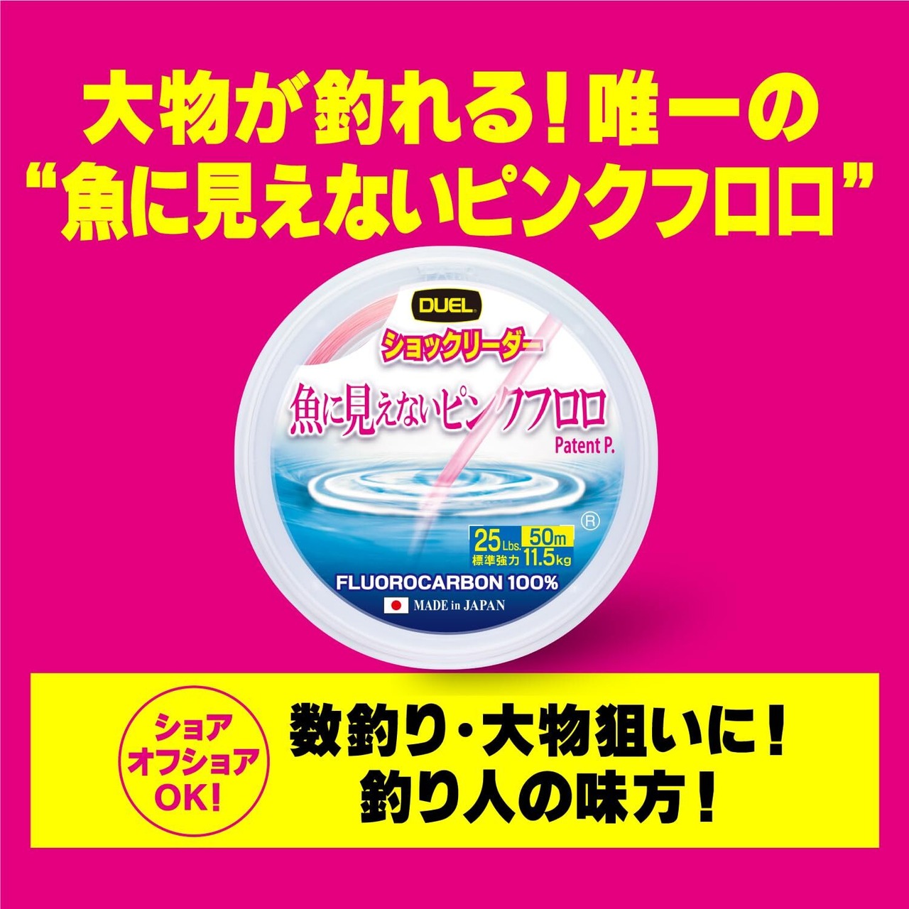 【特価商品】デュエル(DUEL)魚に見えないピンクフロロ ショックリーダー 30m 2Lbs~10Lbs / 50m 12~100Lbs / 30m 130~300Lbs