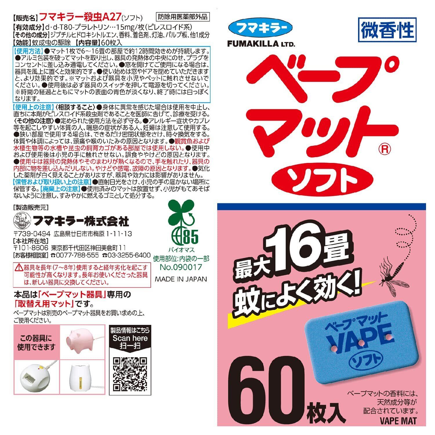 【新春セール】【まとめ買い】 フマキラー ベープ マット 蚊取り 替え ソフト 微香性 60枚入×2個