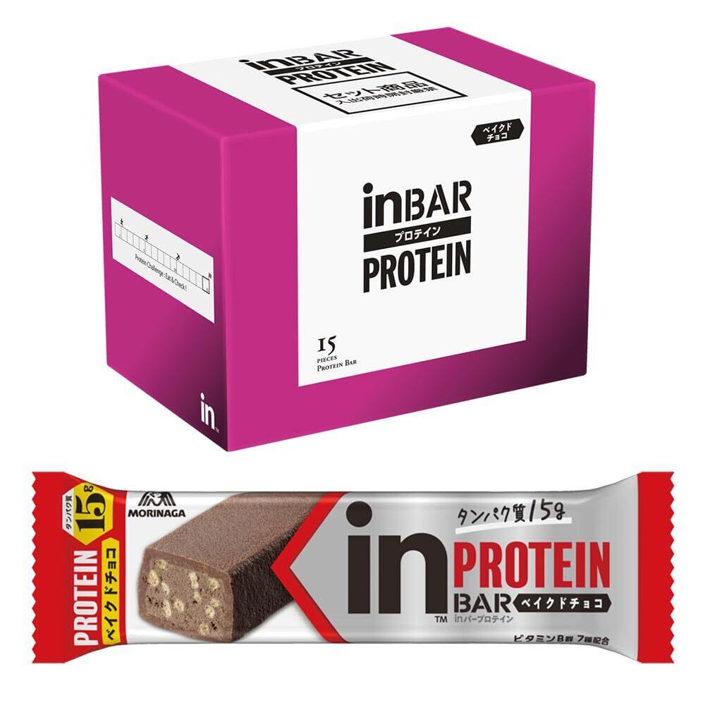 inバー プロテイン ベイクドチョコ (15本入×1箱) プロテインバー プロテインチョコバー 手で溶けない しっとり焼きチョコタイプ 高タンパク15g 森永製菓 【Amazon.co.jp限定】
