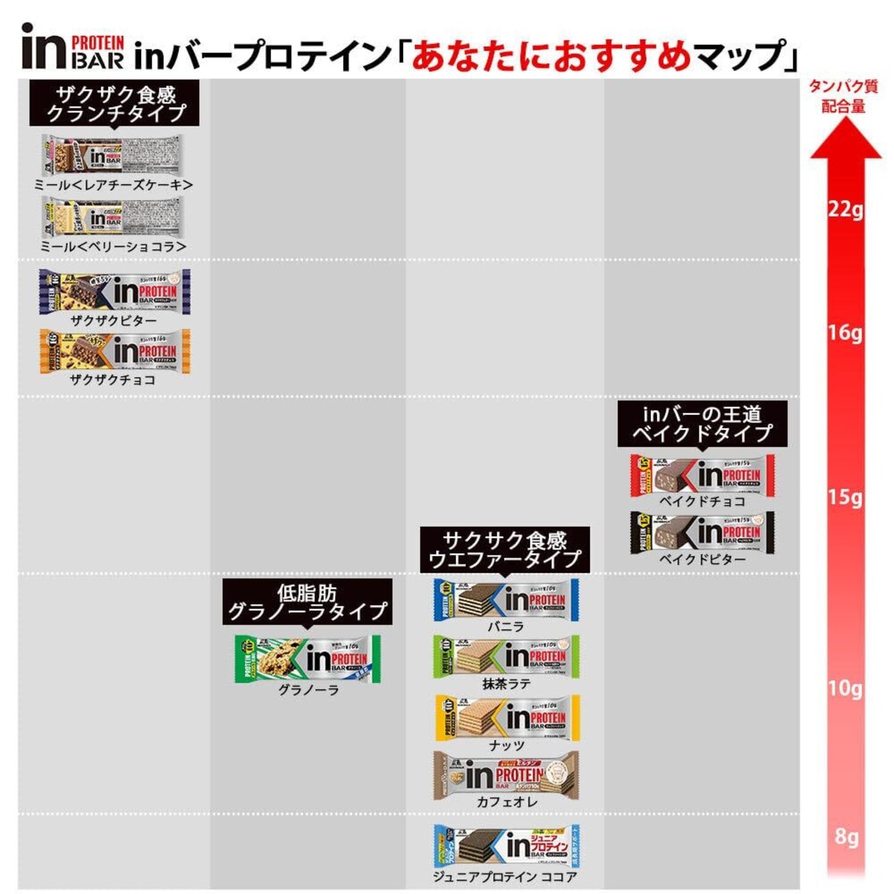 ● 【いつでもどこでもタンパク質チャージ】「inバー プロテイン」シリーズはおいしく手軽におやつ感覚でタンパク質を補給できる、バータイプの栄養補助食品です。プロテイン=タンパク質、タンパク質は体のあらゆる部分のもとになる大切な栄養素。「inバー プロテイン ベイクドチョコ」は1本でタンパク質15g、さらにタンパク質の働きに必要なビタミンB群(7種)を配合。焼きチョコタイプで手で溶けにくく、運動の合間だけでなくデザートや間食にもぴったりの味わいです。15本入りパッケージでお届けします。