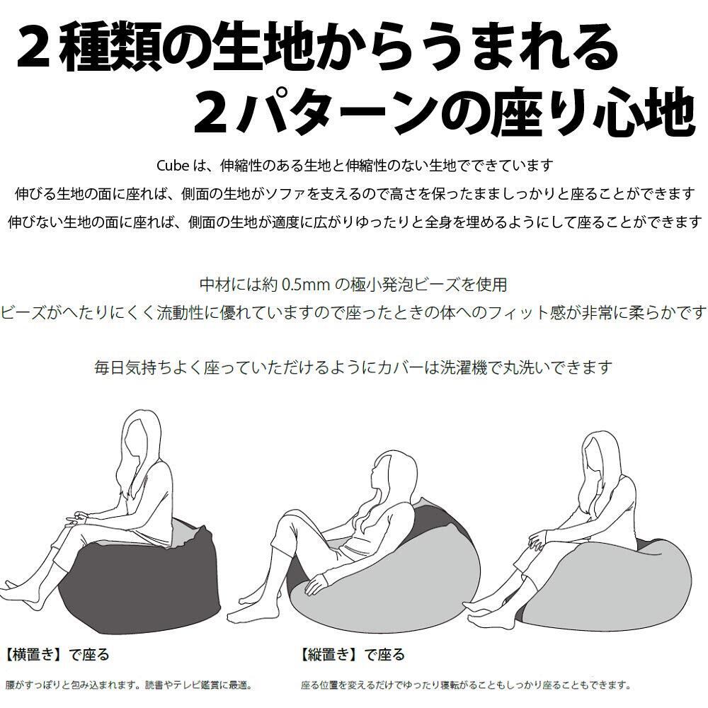 ※ビーズクッションは中材が流動性のある素材を使用している為、全体的に膨らみがある上、 使用経過や図り方によってサイズは異なっております。