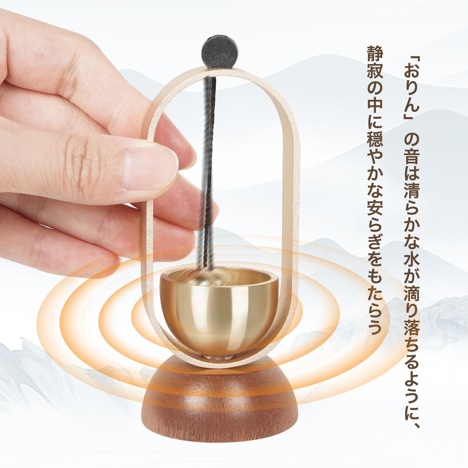 【おりんとおりん ミニの意味】「おりん」が響かせる音は、空間を清めて邪気を払うとされています。祈りを「おりん」の音に乗せて、極楽浄土に届けるともいわれます。