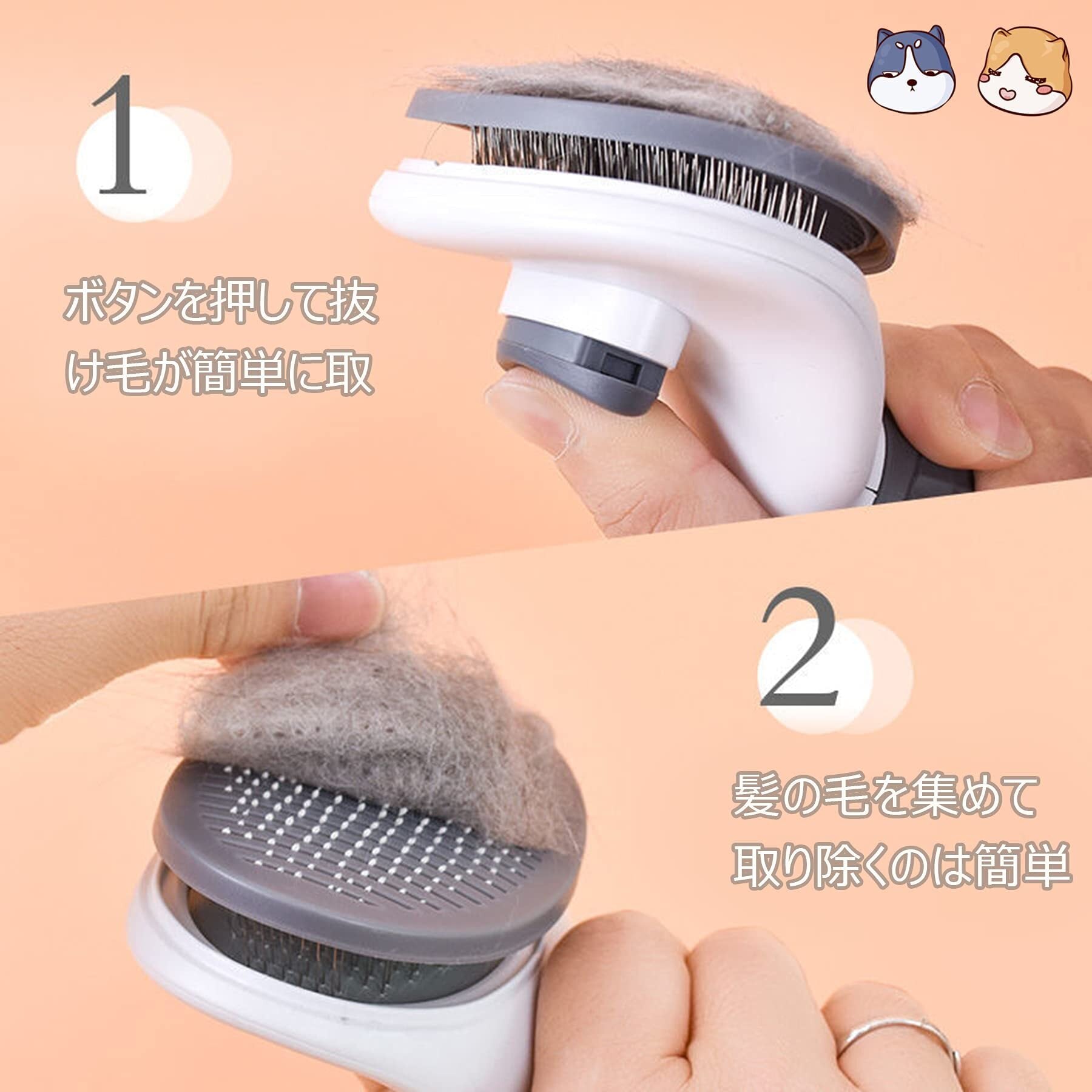 【正規品】SanMori ペット用 痛くない ヒーリングブラシ スリッカーブラシ 長毛・短毛種 くし ワンマッサージしながら抜け毛除去 ボタンを押して抜け毛が簡単に取れる ペットグルーミングブラシ 猫・犬兼用(グレー)