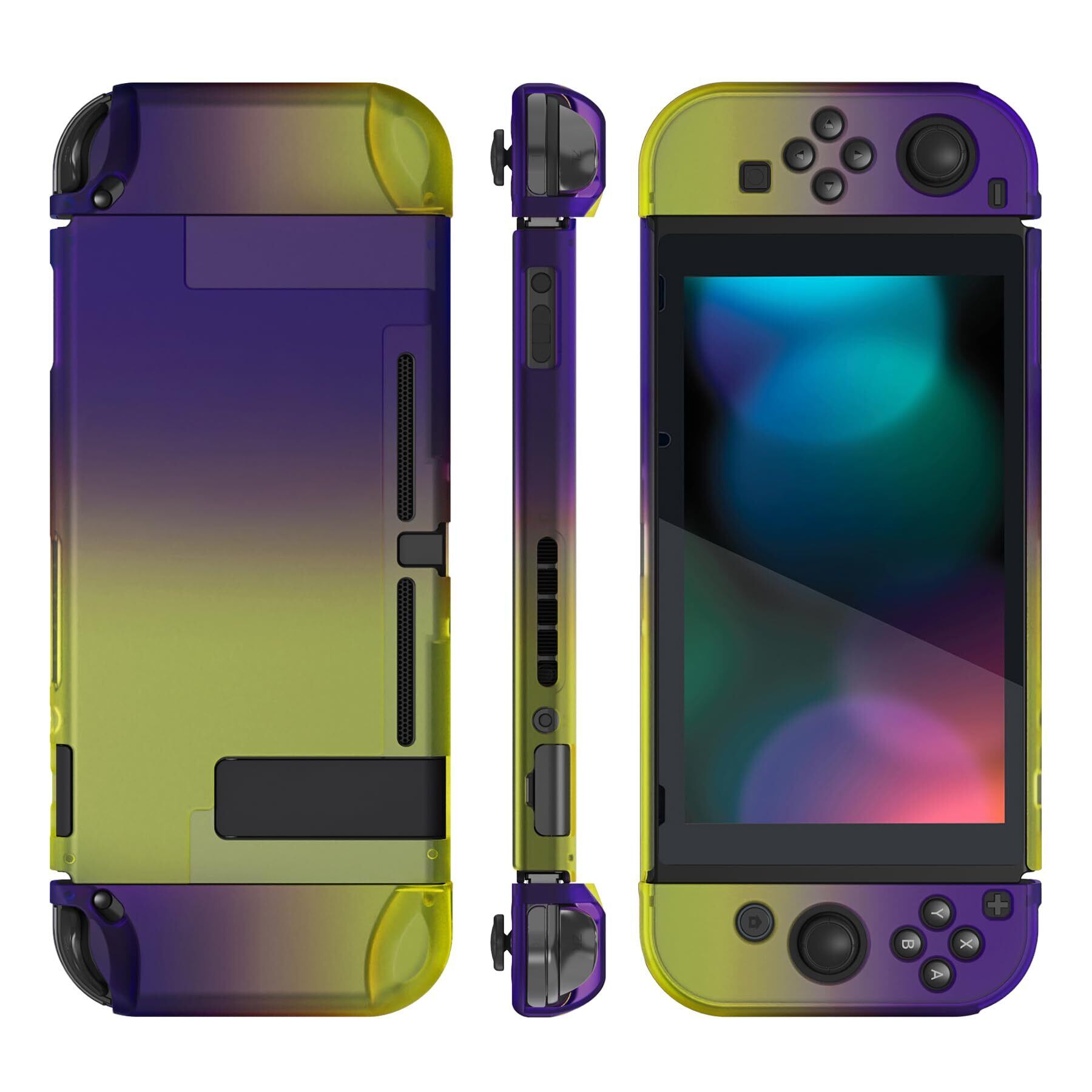 eXtremeRate PlayVital Nintendo Switchコンソールに対応用バックカバー、NS Joyconハンドヘルドコントローラー分離可能プロテクターハードシェル、NintendoSwitch用にカスタマイズされたドッキングできる保護ケース【グラデーションパープルイエロー】