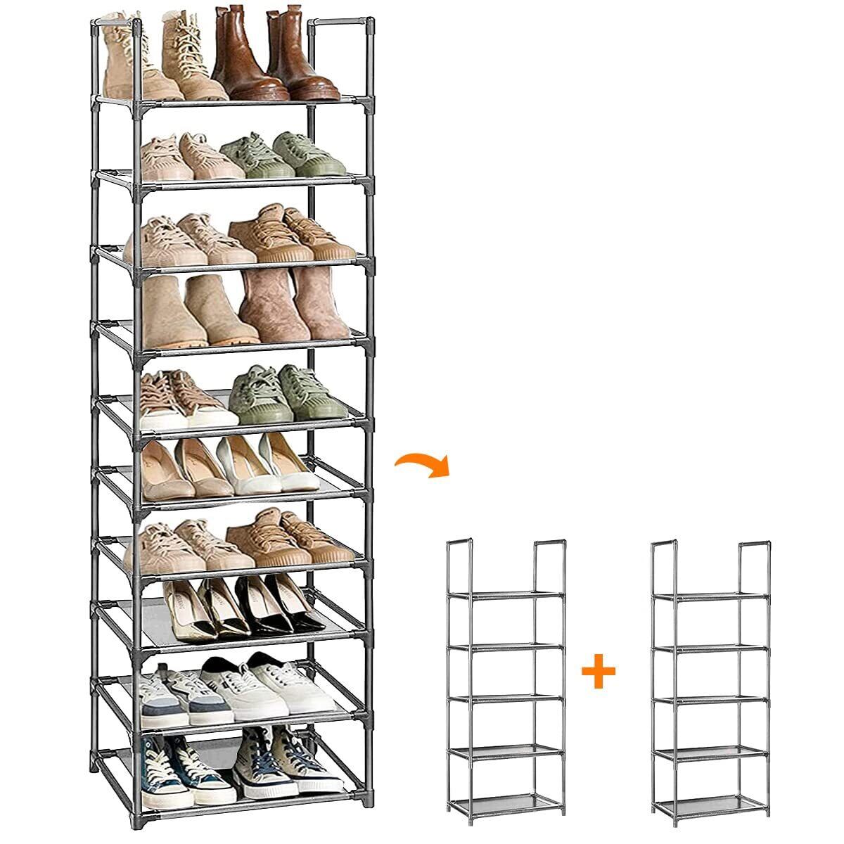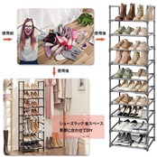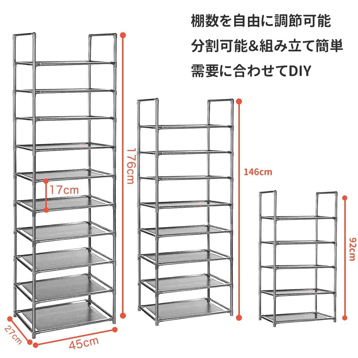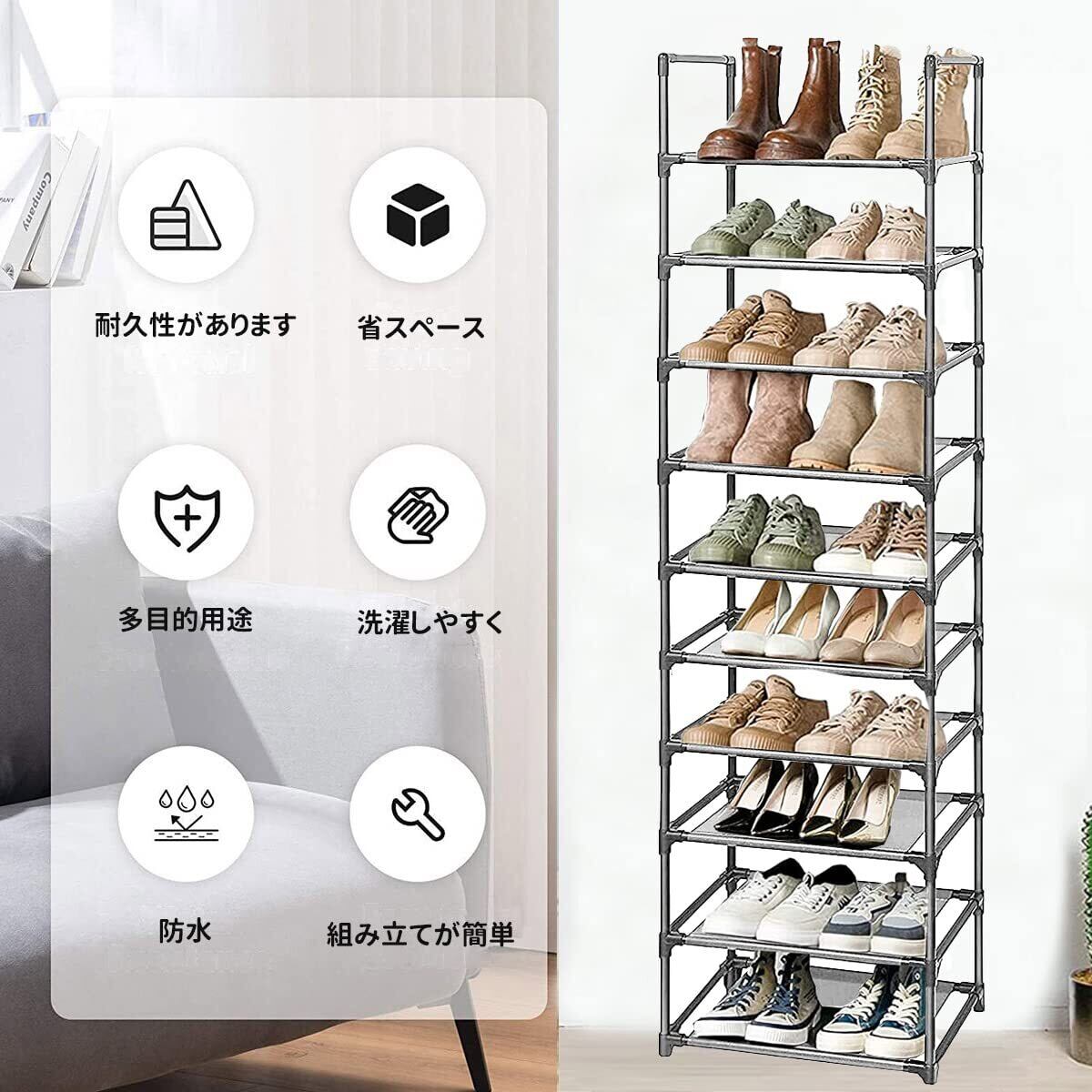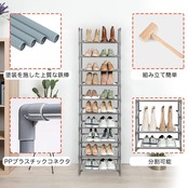 【在庫セール】シューズラック 10段 靴収納 18-20足 靴棚 下駄箱 省スペース シューズボックス スリム 玄関に靴を効率収納 靴入れ 組み立て式 幅約45×奥行28×高さ176cm (グレー 10段)