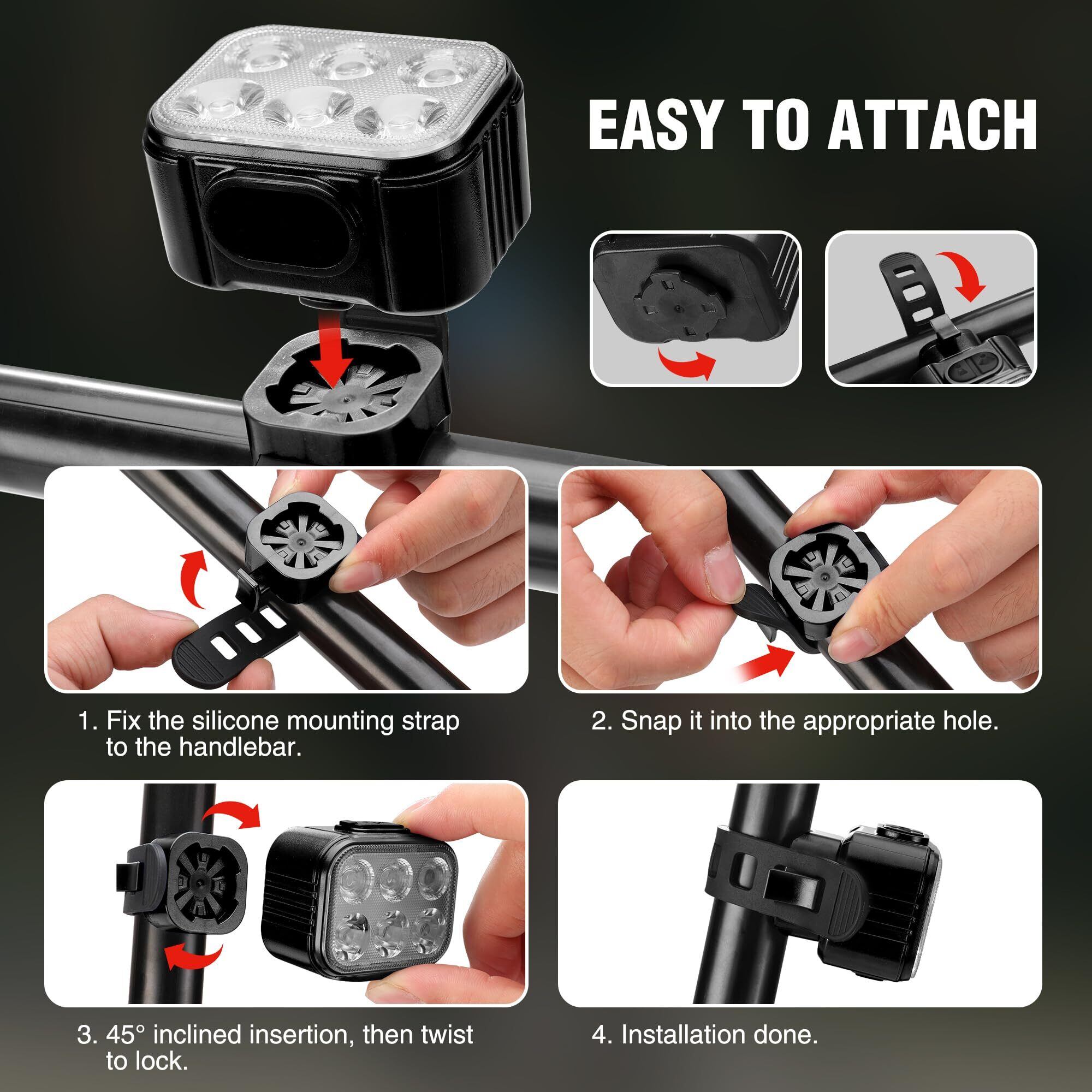 【取り付け簡単+多機能】この自転車ライトは工具を使わず簡単に取り付けることができます。 シリコン製の取り付けストラップは自転車のハンドルバー、シートポスト、バックパックに取り付けることができます。 使用後にさっと取り外すことで盗難防止にも役立ちます。コンパクトな設計で持ち運びも簡単です。 サイクリング、ハイキング、キャンプなど視認性と安全性が重視される場所に最適です。