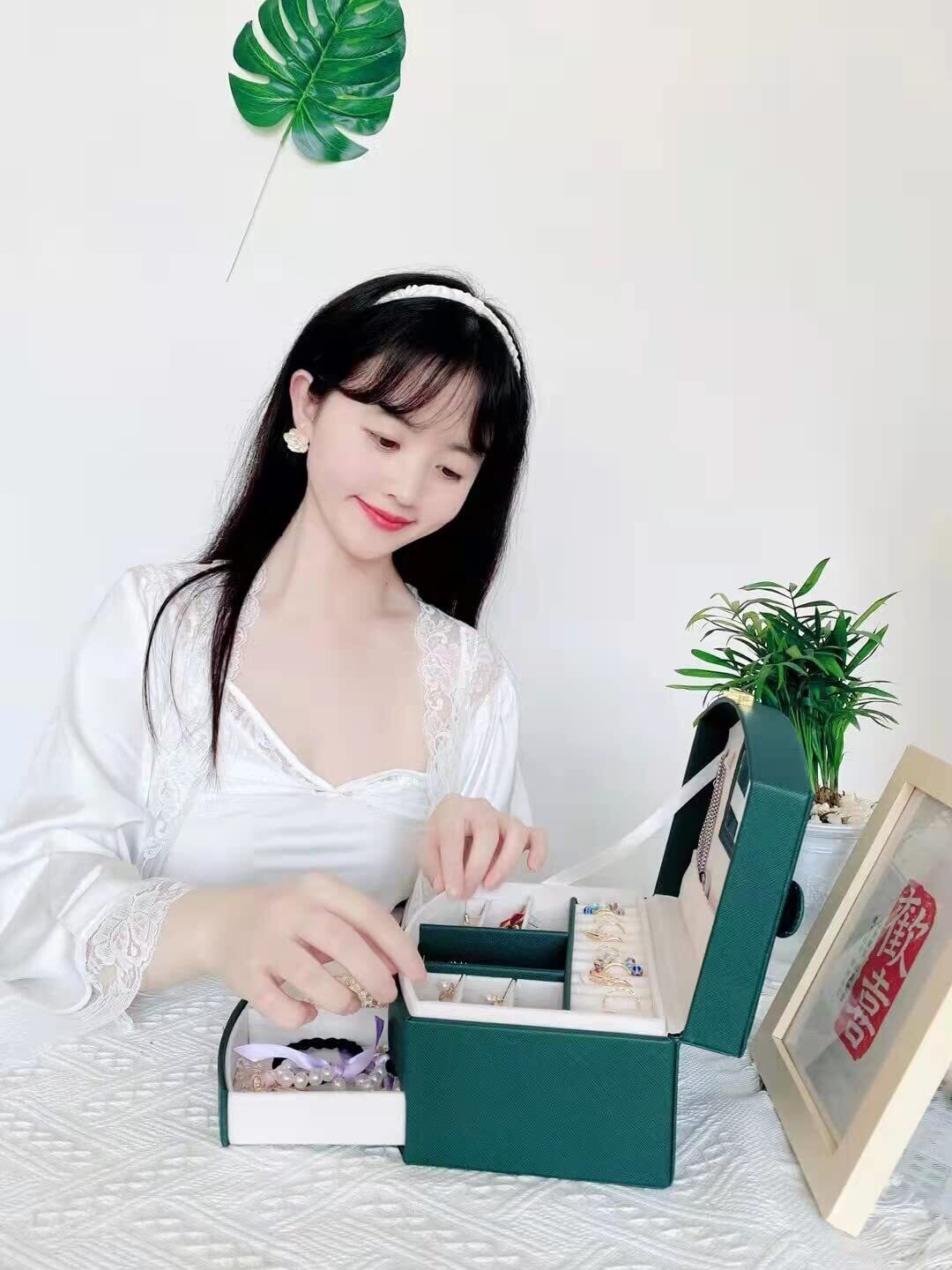 【大容量】宝石箱の寸法:幅20×奥行16×高さ10cm。ジュエリーケーストップ層は指輪、宝石、ネックレス、イヤリング、ピアス、アクサセサリーなどの各種類の小物に合わせるスペースを持っています。これらはこの可愛い収納ケースに入れられます。そして、ピアスに載せるところが自由に開閉できます。下層はブレスレット、腕時計なども収納できます。