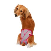 女の子の体型に合わせて開発した女の子専用アウターです。新開発「しっぽのクロスバンド」はしっぽで固定する新しい発想! ズレを解消し、サイズ調整と取りかえが簡単です。伸縮性ニット素材と、おしりを覆う面積を最大限に小さくすることで、愛犬のストレスを軽減、遊びの幅も広がります。専用のマナーパッドと併用すると衛生・経済的です。