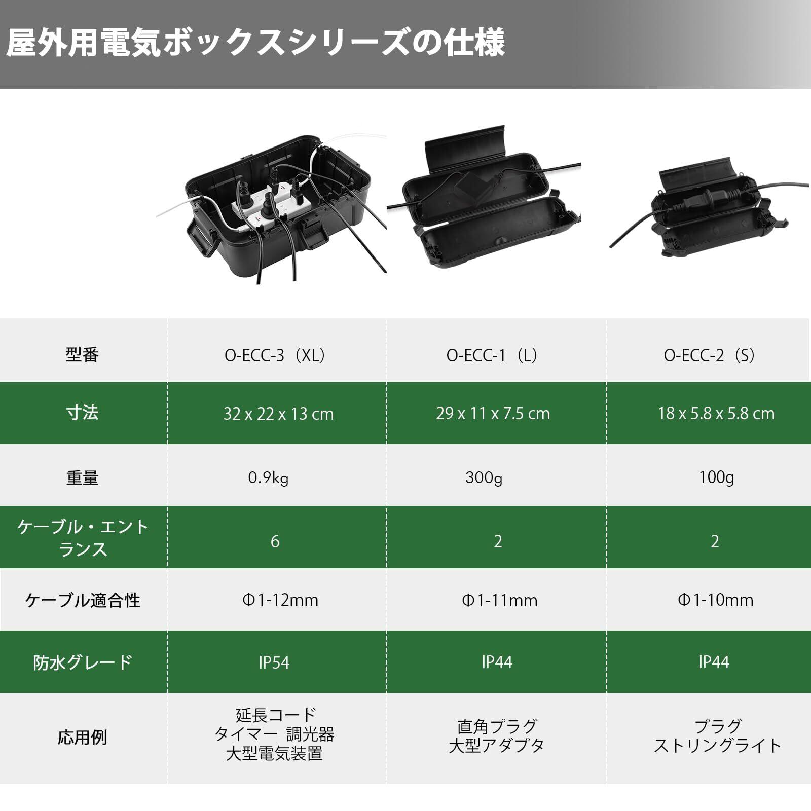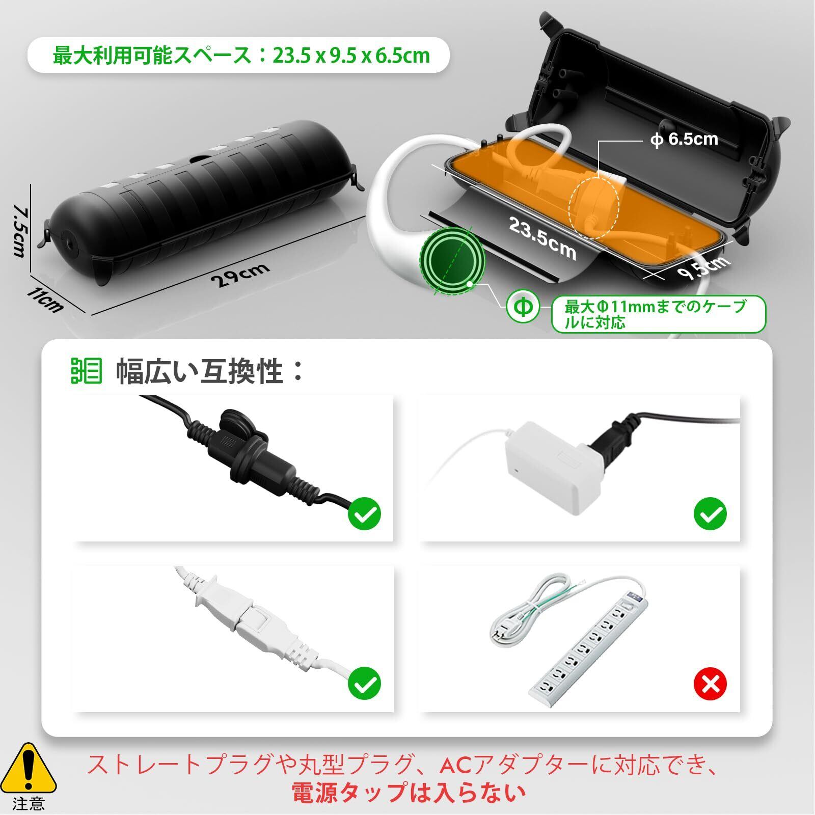 外寸:29 L×11 W×7.5 H cm 内寸:24.1 L×7.5 W×7.3 H cm 本製品は電源タップに適合しません。重量:約300g。Φ1-11mmまでの幅広い電線、フラットケーブル、編組電線に使用できます。