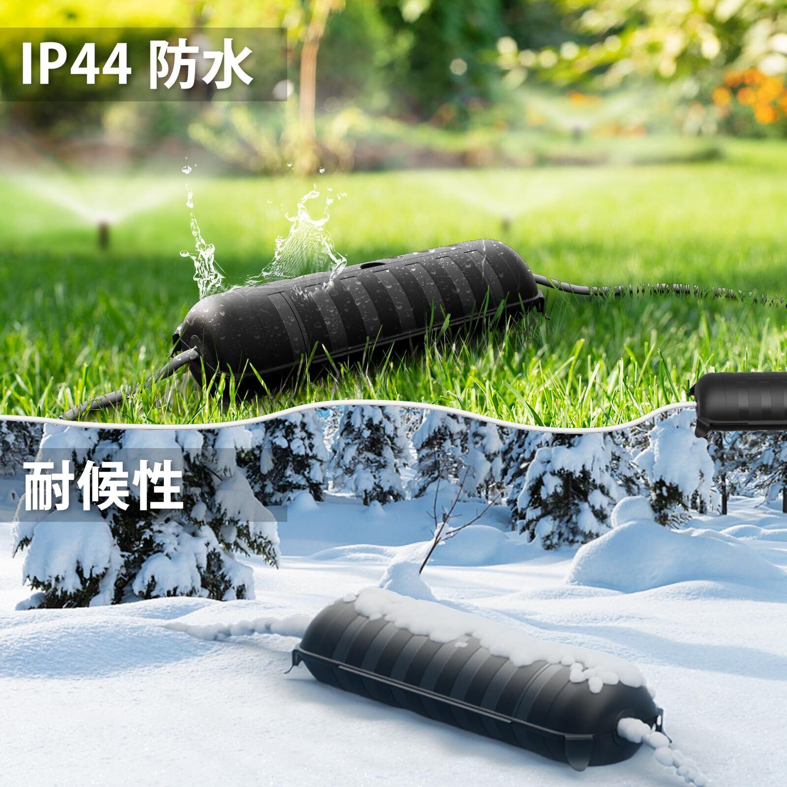 防水防塵:IP44防水、両端ゴムシール、防水、雪、雨、防塵などがあります。屋外のランプストリング、景観照明、クリスマスや他の休日の装飾を保護するために最適です。