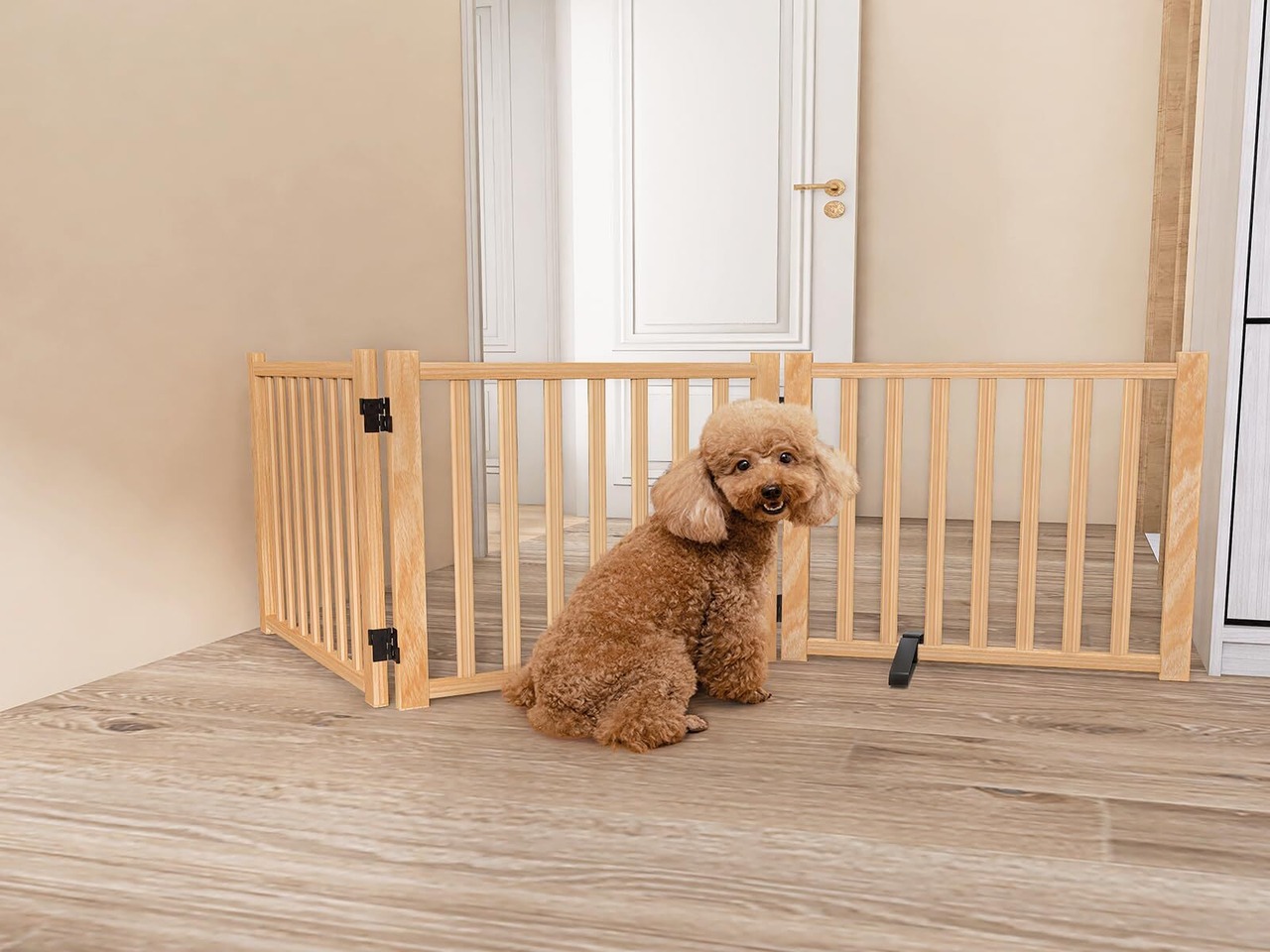 【2022最新】ペットゲート 木製犬ゲート YOCAN ペットフェンス 高さ43cm 長さ175cm 置くだけゲート折りたたみ 倒れない いぬ 柵 室内 犬脱走防止 飛び出し防止 小型犬 中型犬用 天然木 3枚パネル