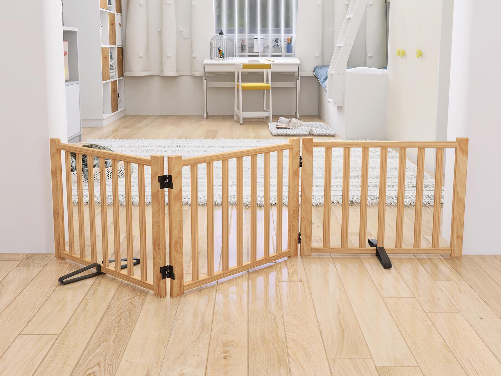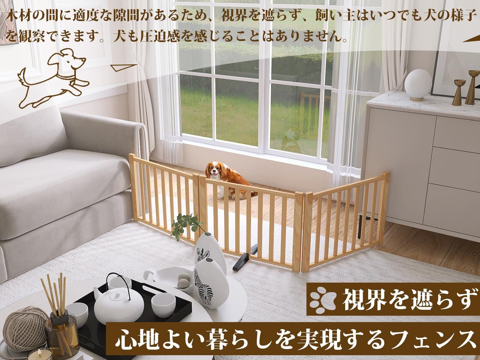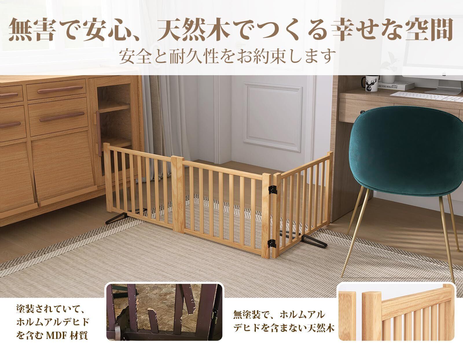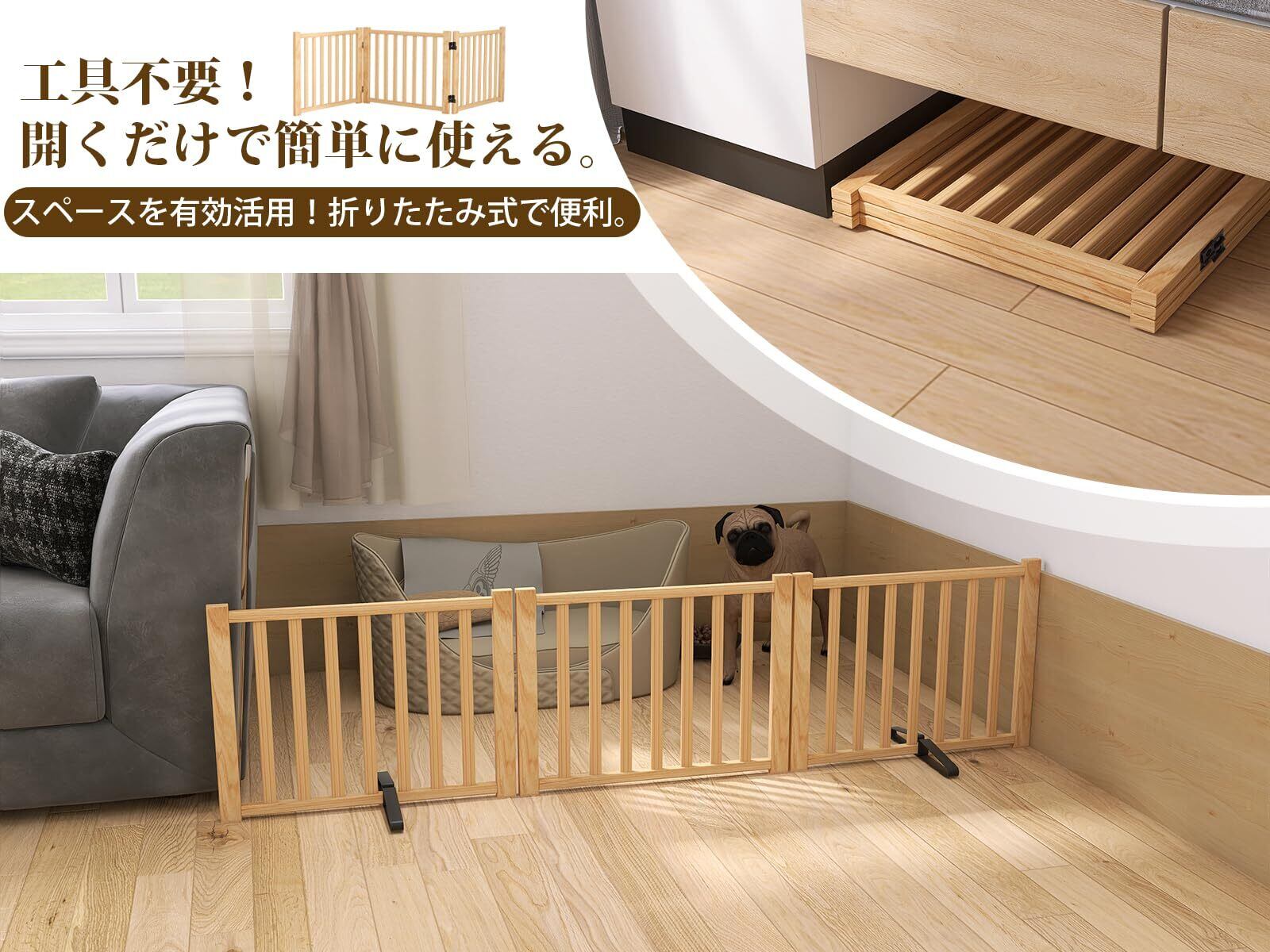 ペットゲート 木製犬ゲート YOCAN ペットフェンス 高さ43cm 長さ175cm 置くだけゲート折りたたみ 倒れない いぬ 柵 室内 犬脱走防止 飛び出し防止 小型犬 中型犬用 天然木 3枚パネル