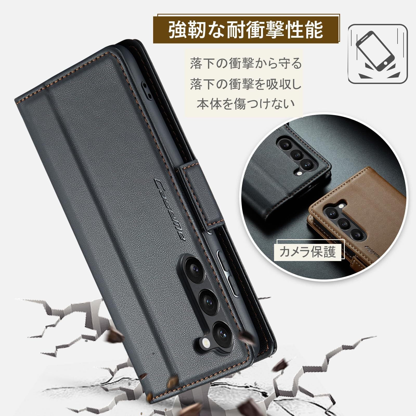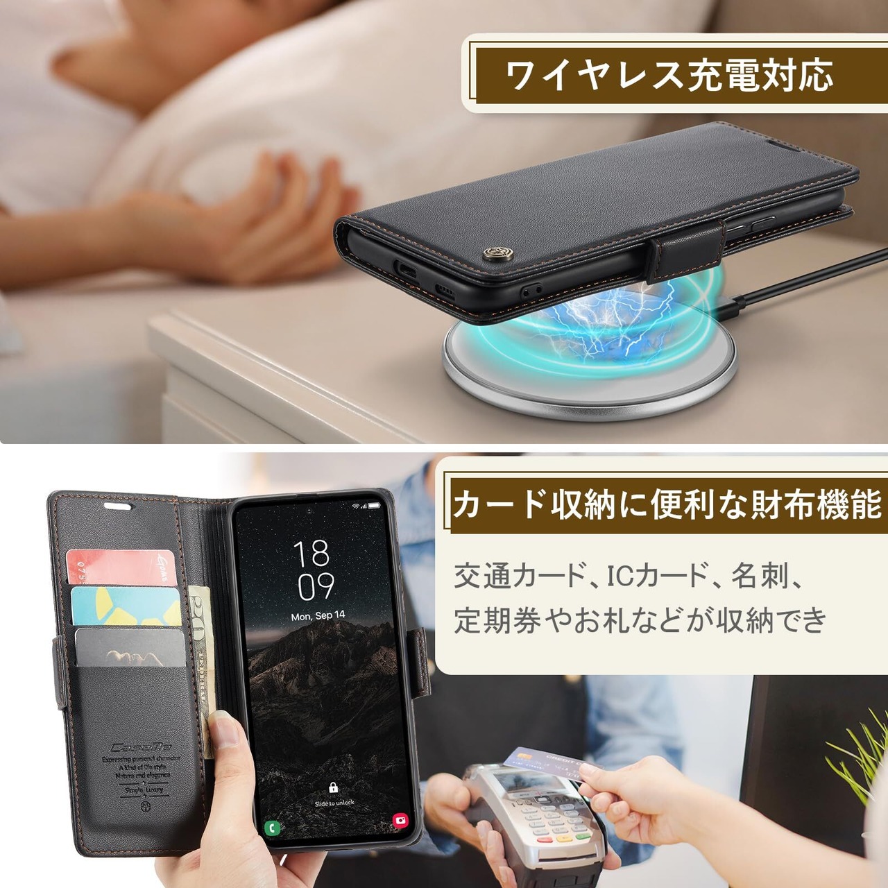 Galaxy S25 用 ケース 手帳型 財布型 カードポケット付き ギャラクシーs25 / SC-51F / SCG31 カバー カード収納 Uovon スマホケース 高級レザー 耐衝撃 全面保護 スタンド機能 ストラップホール付き マグネット式 · ブラック