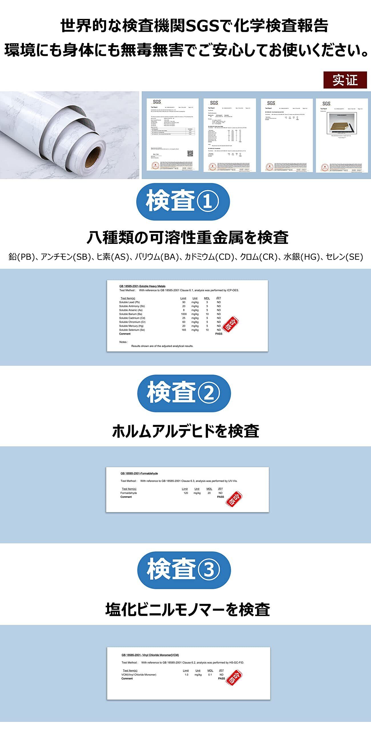 製品材料の安全性について、世界的な検査機関SGSで化学検査(可溶性重金属とホルムアルデヒドと塩化ビニルモノマー)を行っており、「検査合格」を取得しております。環境にも身体にも無毒無害でご安心してお使いください。商品に何か不具合または何か不明点がございましたら、遠慮しなくてご連絡をいただきますようお願い申し上げます。必ずお客様にご満足いただけますよう迅速に対応いたします。