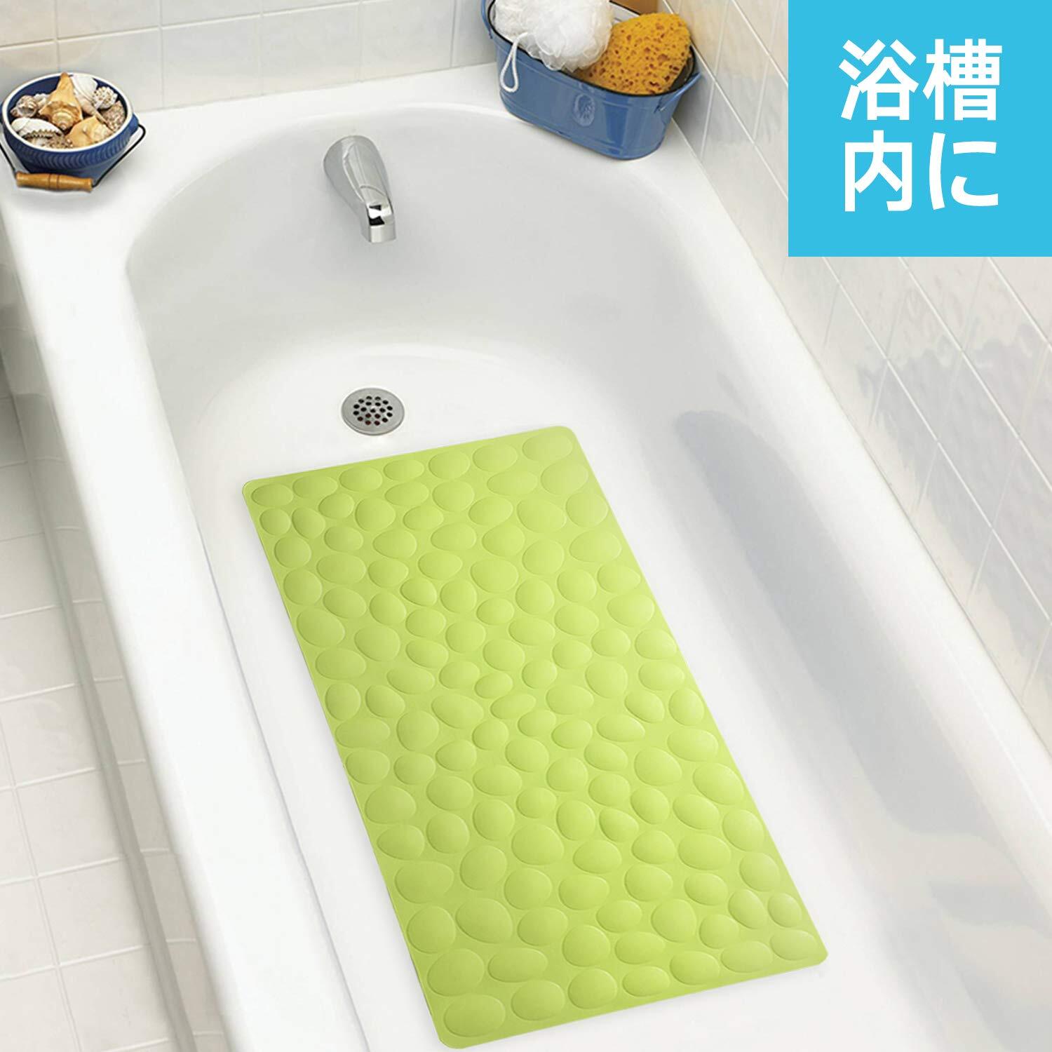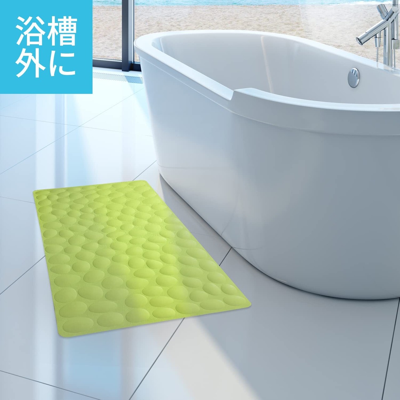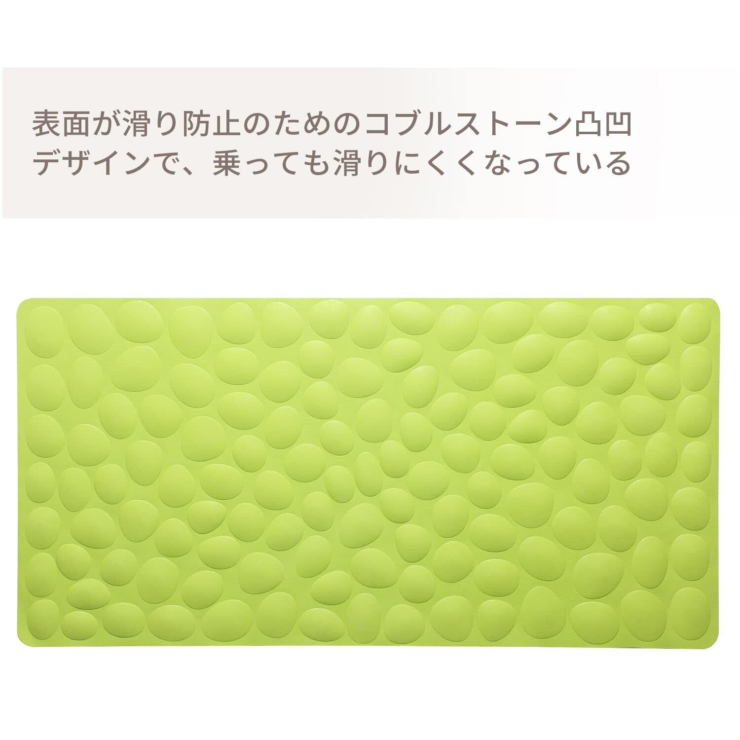 IRETION お風呂 すべり止めマット 浴槽 40×80cm ストーン柄 天然ゴム製 お風呂マット 介護 転倒防止 吸盤付き 柔らかい (グリーン)