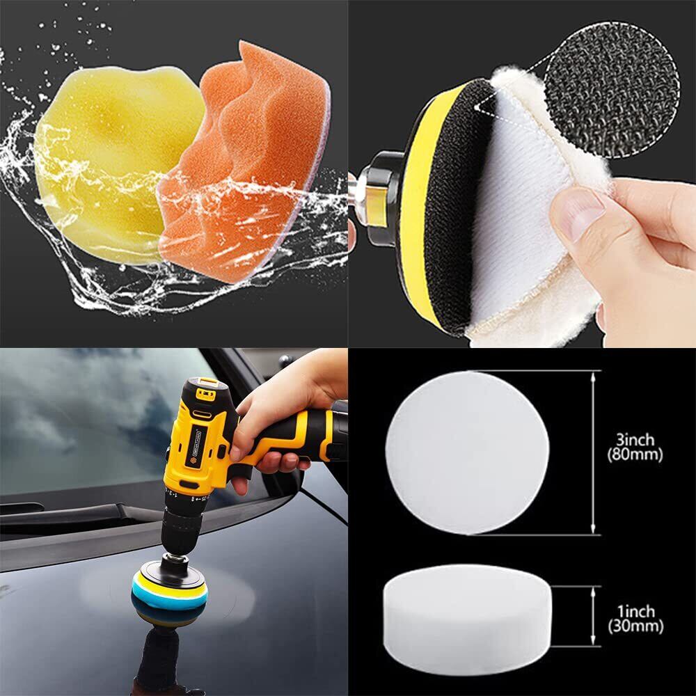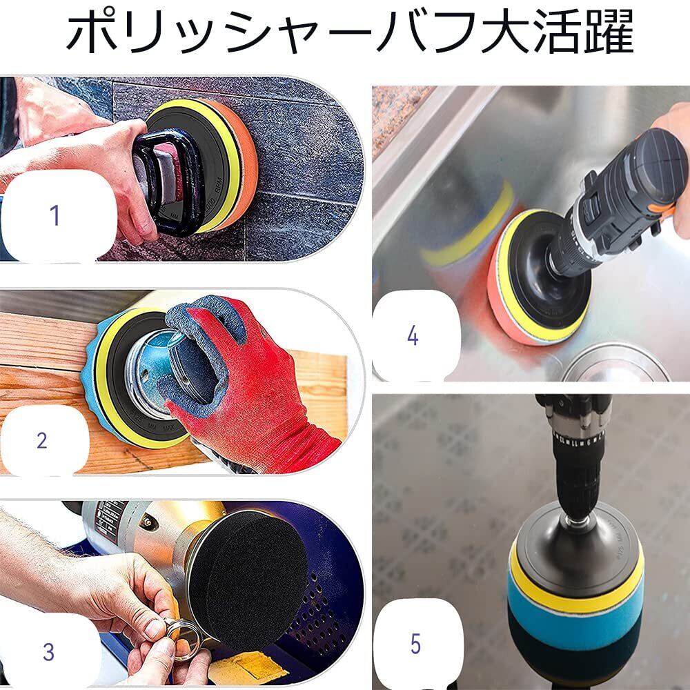 【高品質ポリッシャースポンジセット】車の美しさ、ワックスがけ、研磨用のインパクト用バフです。研磨バフは柔軟なスポンジ材質ですが、超弾性、超靭性、強い吸水性、良好な空隙率が備えています。ポリッシャーバフスポンジ使用時、弾性があるので車の塗料を損傷することができません。ワックスがけと一緒に使って、良い美容/研磨の効果があります。家庭用の電動ドリルや電動ドライバーにフィットします。