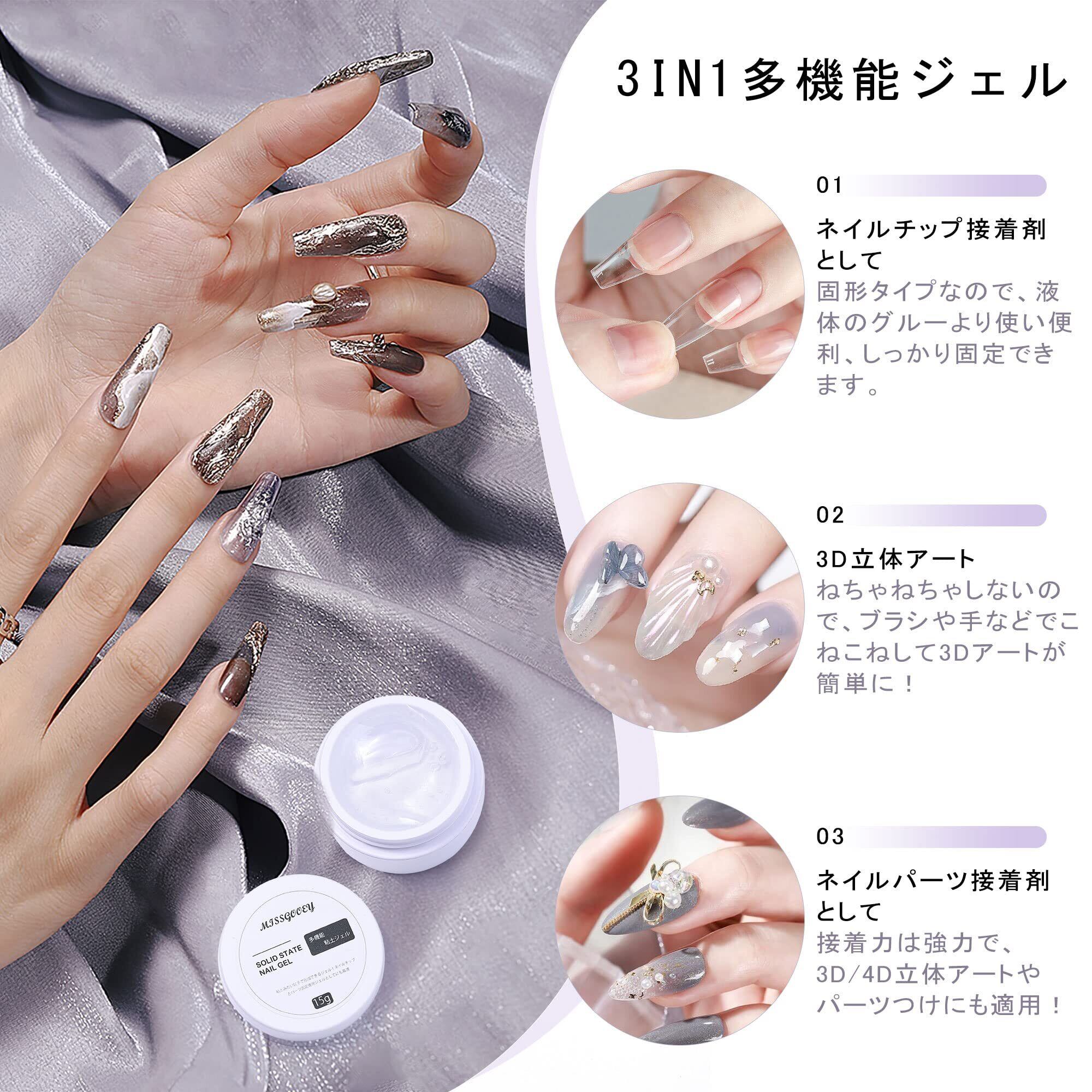【3in1多機能クリアジェル】粘土みたいに手で形成できるジェル!ねちゃねちゃしないので、ブラシや手などでこねこねして3Dアートが簡単に!ネイルチップとパーツ固定専用ジェルとしてにも最適です。