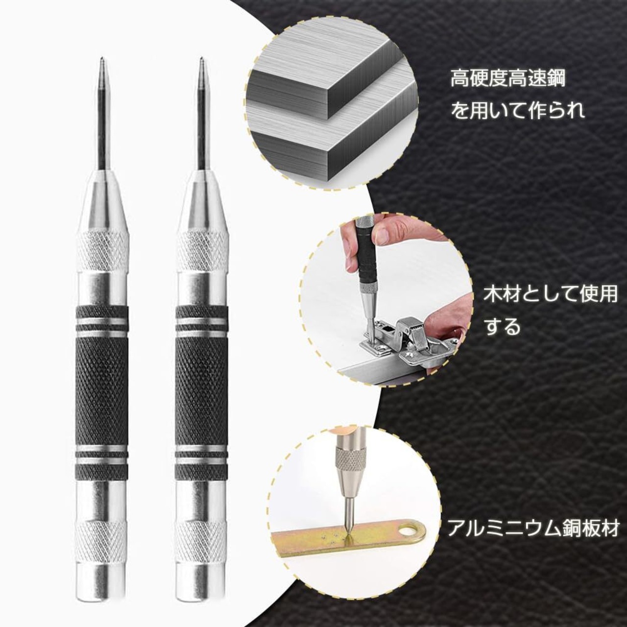 【新着商品】自動ポンチ オートセンターポンチ 自動センターパンチ 超硬自動ポンチ 穴あけ ハイス鋼 ハンマー不要 木材に適しハイス鋼 窓 ガラス ドリル下穴あけに センターパンチ付き 電動ドリルのお供 メタルウッドプラスチック用 予備針2本付き 1セット