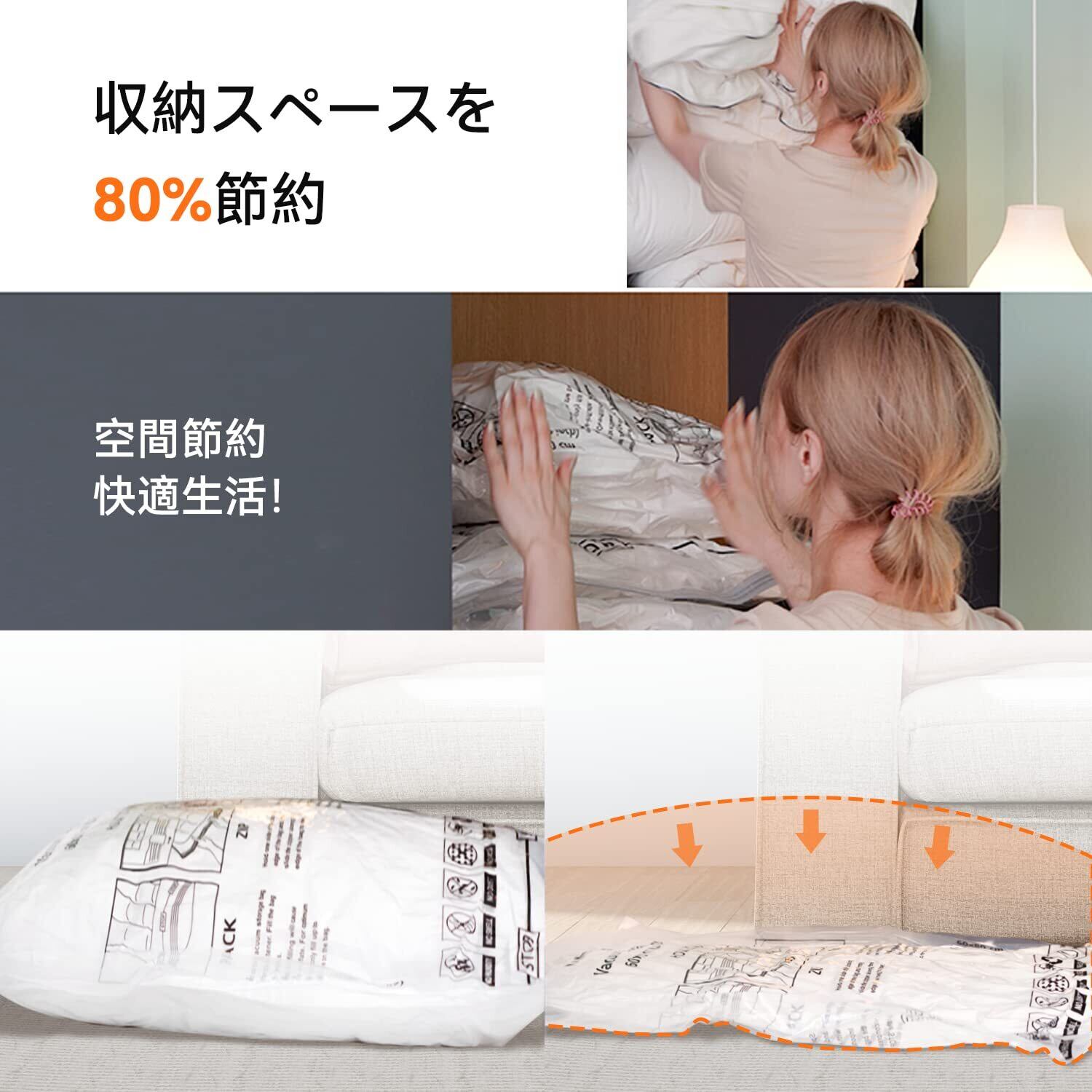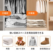 【耐久性が高い素材】破れにくい複合フィルムを使用しており、丈夫な素材で安心してご使用いただけます。何度でも繰り返し使えます。【布団収納袋で布団の守り】防水性と密封性に優れていますので、布湿気、汚れ、昆虫類、カビ、臭いなどからのアイテムの保護、常に清潔に保管して頂けます。掃除機でも対応可能。