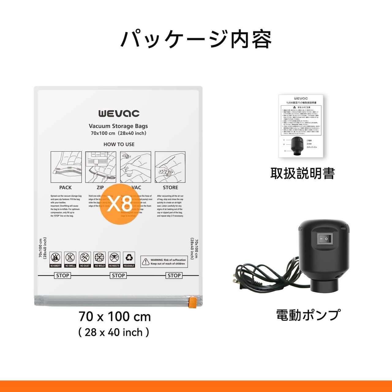 布団圧縮袋 8枚100×70cm電動ポンプ 圧縮袋 布団 衣類圧縮袋 Wevac 布団収納袋 旅行用圧縮袋 圧縮袋 旅行 衣類 洋服 羽毛布団 引越し 省スペース 掃除機不要