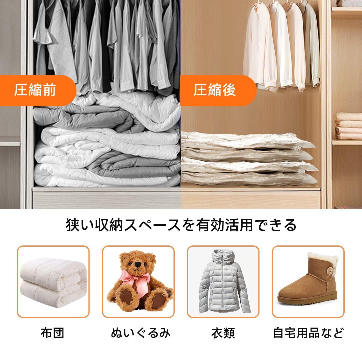 【2022最新】布団圧縮袋 8枚100×70cm電動ポンプ 圧縮袋 布団 衣類圧縮袋 Wevac 布団収納袋 旅行用圧縮袋 圧縮袋 旅行 衣類 洋服 羽毛布団 引越し 省スペース 掃除機不要