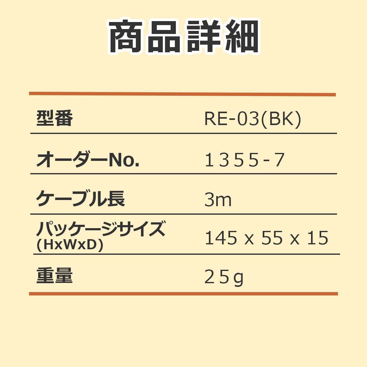 【2022最新】エルパ (ELPA) テレビイヤホン イヤホン 有線 3m ブラック RE-03(BK)