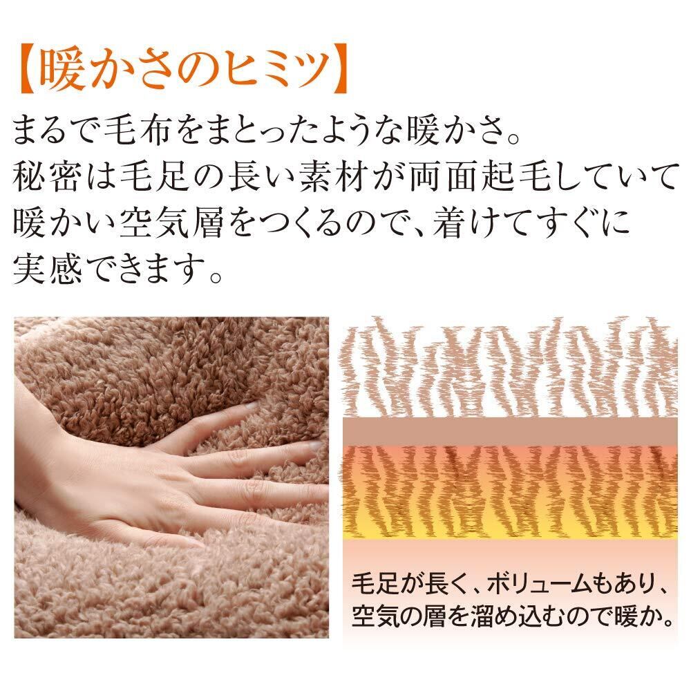 秘密は毛足の長い素材が両面起毛していて暖かい空気層をつくるので。着けてすぐに暖かさが実感できます。