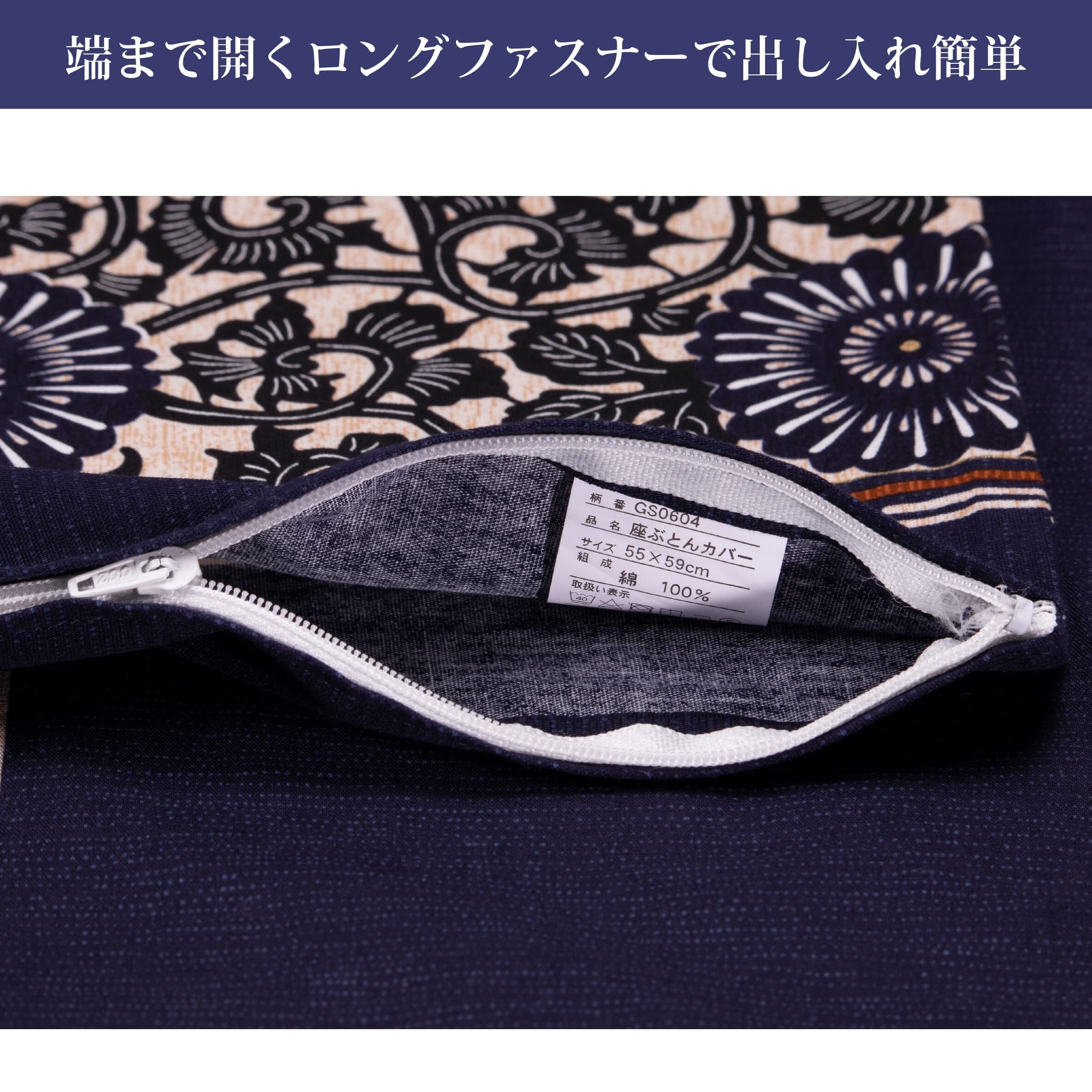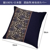nishikawa 【 西川 】座布団カバー 銘仙判(55X59cm) 洗える 菊唐草模様 日本製 ブルー PG02083093
