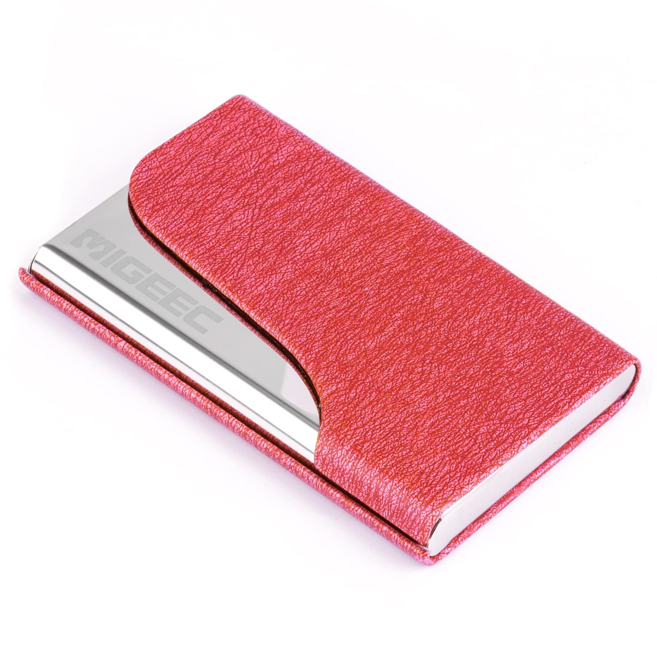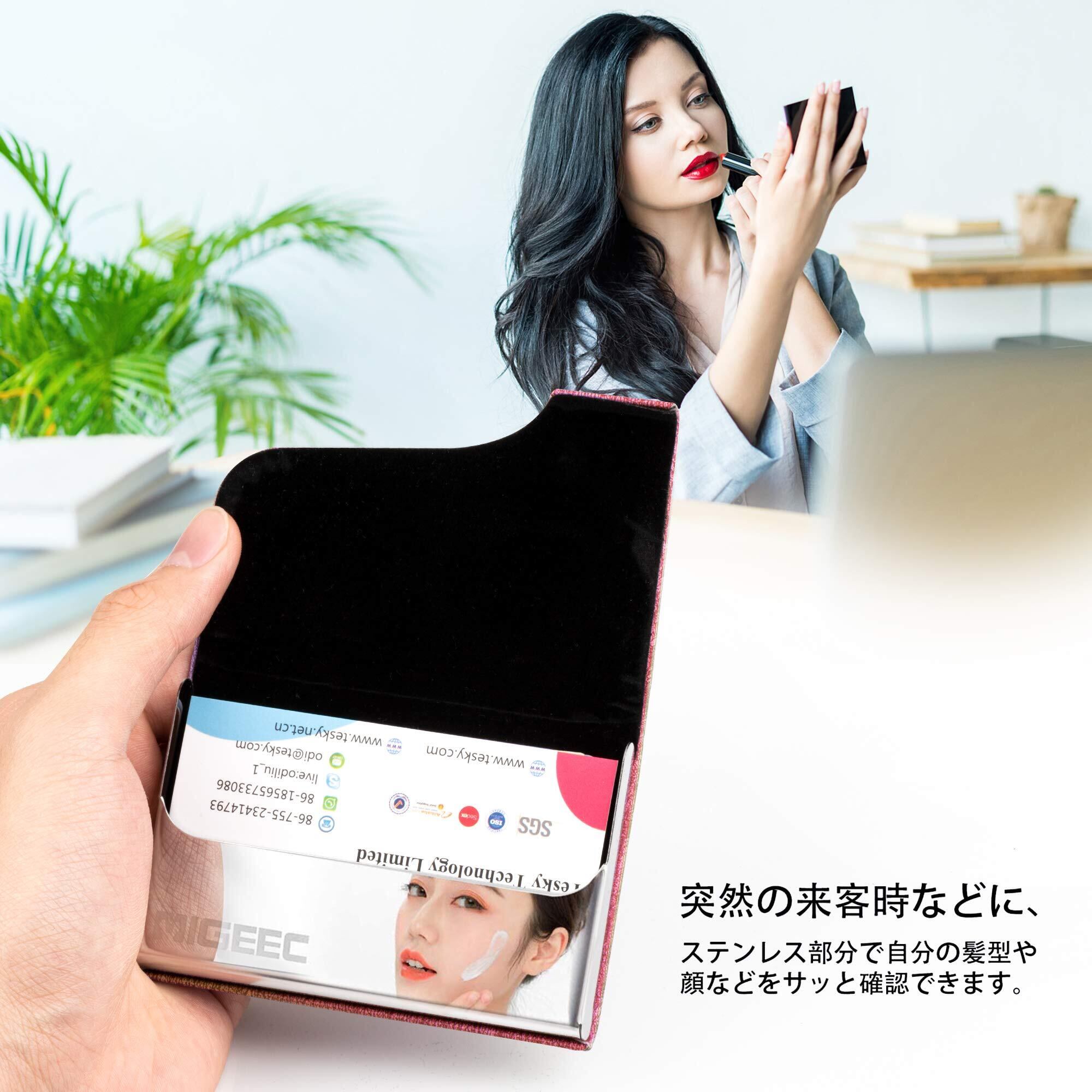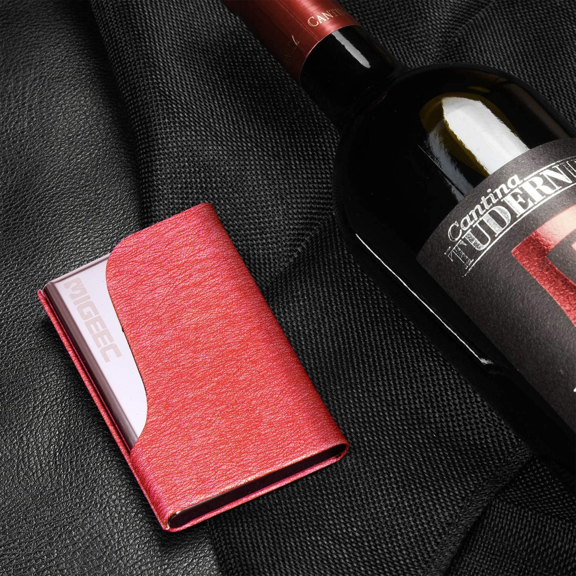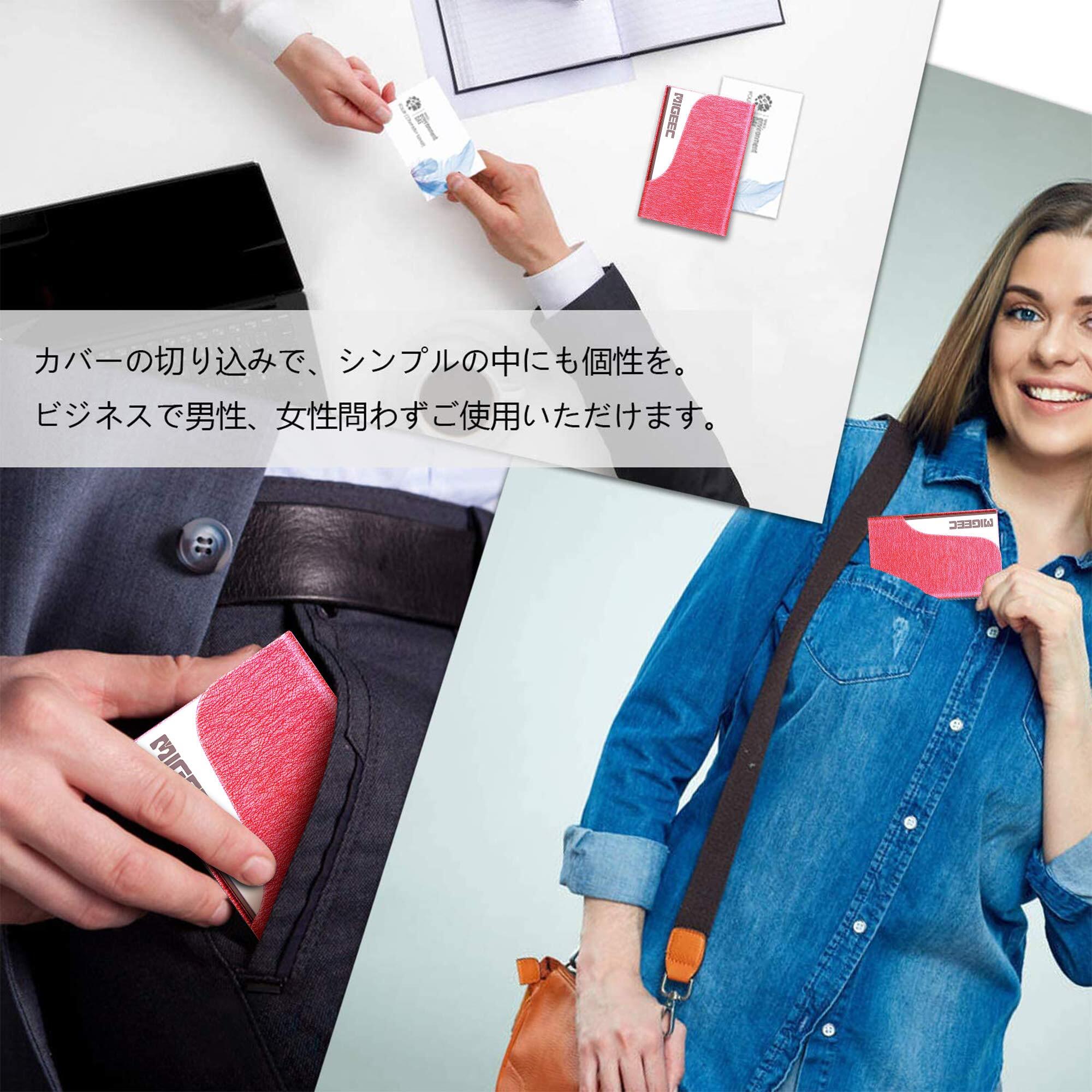 名刺入れ 名刺ケース - 大容量 取り出し簡単 ステンレス鋼 カードケース PUレザー 角が折れない マグネット式 1秒開閉 化粧箱 仕切りカード 専用クロス 名刺が折れない ビジネス メンズ レディース 男女兼用 (ローズレッド)