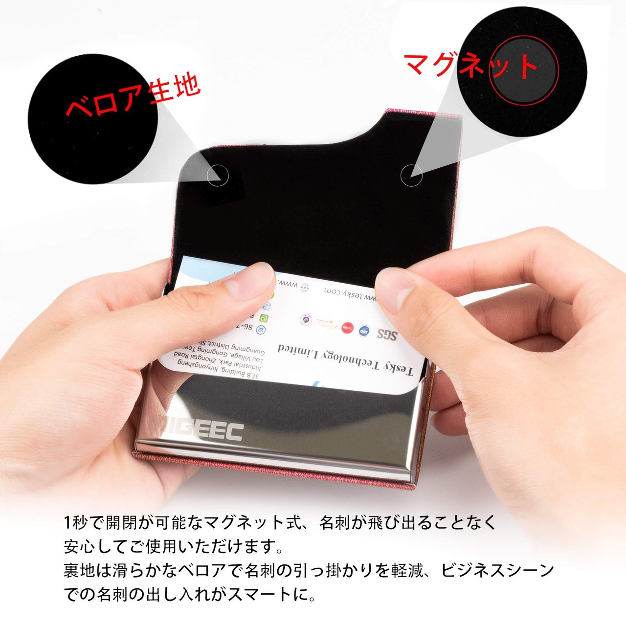 【スマートに名刺交換が可能】フタの裏側にマグネットが入っています。留め具がなく、使用の際はスマートに名刺を取り出すことができます。