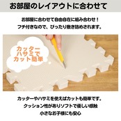 お部屋のレイアウトに合わせて自由自在に組み合わせ。フチ付きなので、ぴったり敷き詰められます。カッターやハサミを使えばカットも簡単です。クッション性がありソフトで優しい感触。小さなお子様にも安心。子供部屋、キッズルームで転倒時の怪我軽減に。