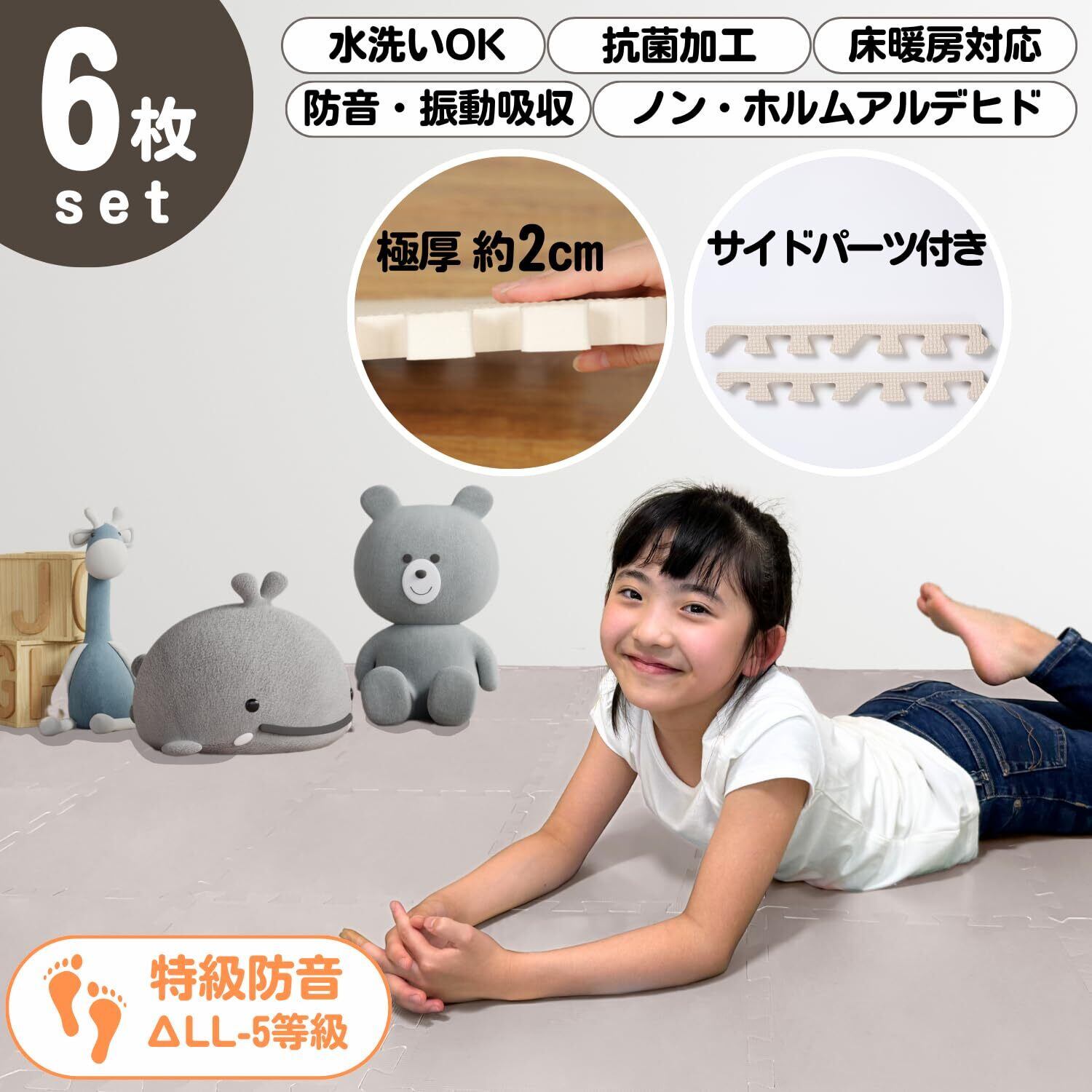 【2022最新】ユノックス ジョイントマット 30×30cm 極厚2cm 6枚セット フチ付き アイボリー ノン・ホルムアルデヒド 抗菌加工 床暖房対応 水洗いOK 床保護 キズ防止 防音 振動吸収 床材