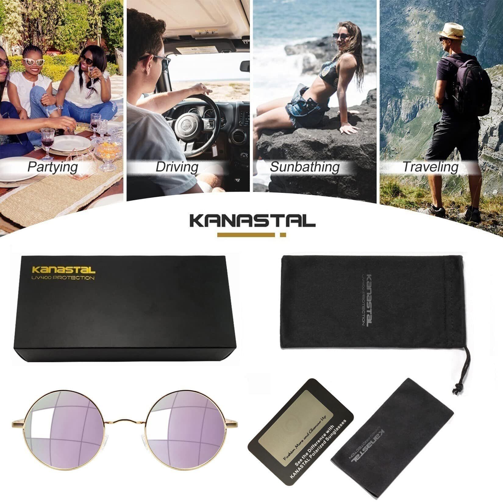 [KANASTAL] サングラス 丸 メンズ 丸型 ラウンド レディース クラシック デザイン ファッション UVカット 軽量 偏光 運転用 さんぐらす